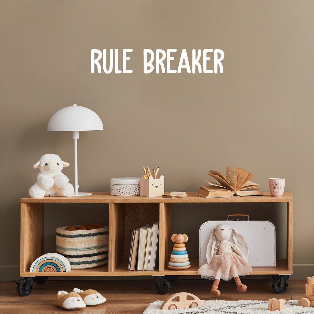 This awesome cute decal quote "Rule Breaker"; is the perfect touch for your home. Use it for your living room; playroom; kids room or anywhere you want to bring some extra cute decoration. It's a vinyl sticker that is easy to put on any smooth and dry surface. Our modern designs don't just brighten up the room; but brighten up the day. Using top of the line vinyl across all of our production allows us to be the leaders in quality and design.