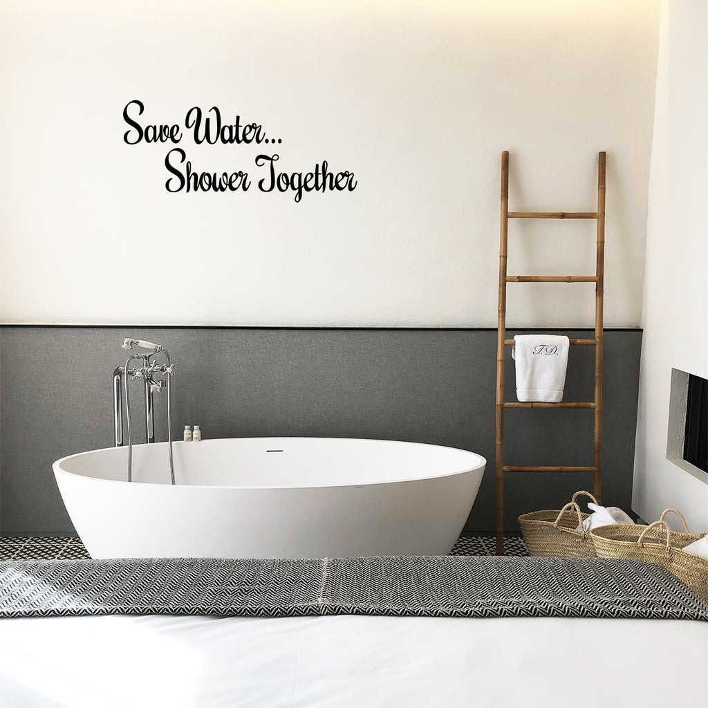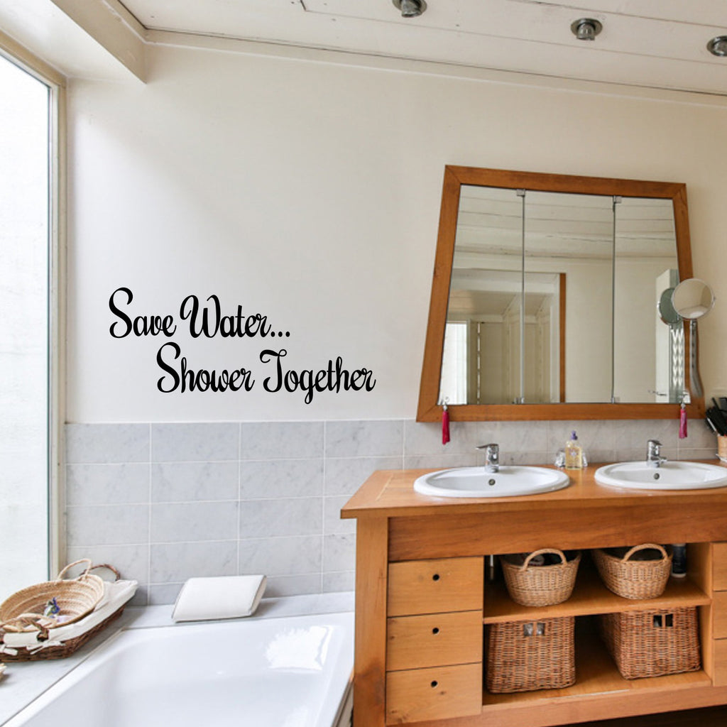 This humorous "Save Water Shower Together" life quotes wall art decal is funny and the perfect touch for indoor decoration. It’s a vinyl sticker that is easy to put on almost any smooth surface and really brings a room together adding the perfect touch of decoration. This vinyl decal quote is great to put in your bedroom or bathroom and gives a touch of witty character. Our inspiring quotes don’t just brighten up the room; but brighten up the day. Using top of the line vinyl across all of our production allows us to be the leaders in quality and design.The easiest surfaces for vinyl to stick on is Windows Walls Mirrors Dorm Rooms Cars Lockers Flat and Smooth Surfaces Tables and Glass CabinetsAll vinyl packages come with easy to follow instructions further explaining just how simple it is to apply vinyl on and off your surface of choice. Prior to applying the vinyl; be sure the surface is clean and oil free for best results. This vinyl is waterproof and is not permanent so it’s not only easy to use but easy to remove as well. In general; vinyl lettering is one of the latest and greatest trends in home decoration. Because our products are high quality; they give the illusion of painted wall art without the mess; cost; or time. What are you waiting for? Let’s get crafty!