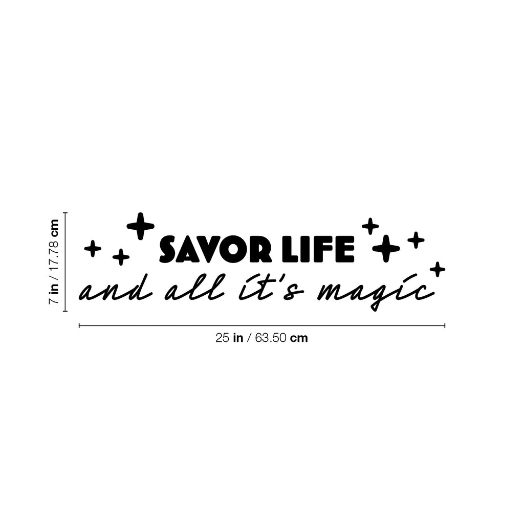 This awesome motivational & positive decal quote "Savor Life And All It's Magic "; is the perfect touch for your home or office. Use it for your bedroom; living room; classroom or anywhere you want to bring some extra positive decoration. It's a vinyl sticker that is easy to put on any smooth and dry surface. Our modern designs don't just brighten up the room; but brighten up the day. Using top of the line vinyl across all of our production allows us to be the leaders in quality and design.