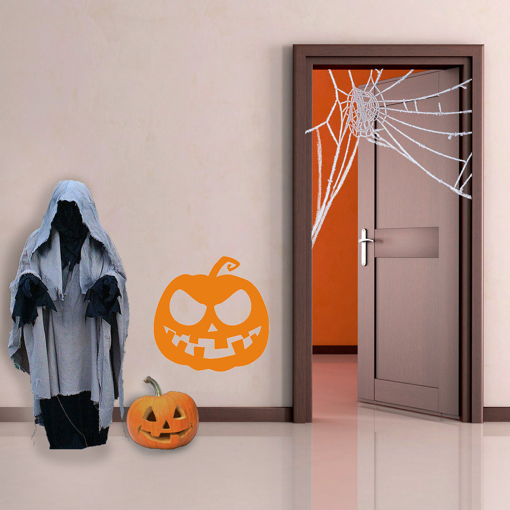 Vinyl Wall Art Decal - Scary Pumpkin - Fun Spooky Halloween Seasonal Decoration Sticker - Fall Season Indoor Outdoor Wall Door Window Living Room Office Decor (23" x 23"; Black)