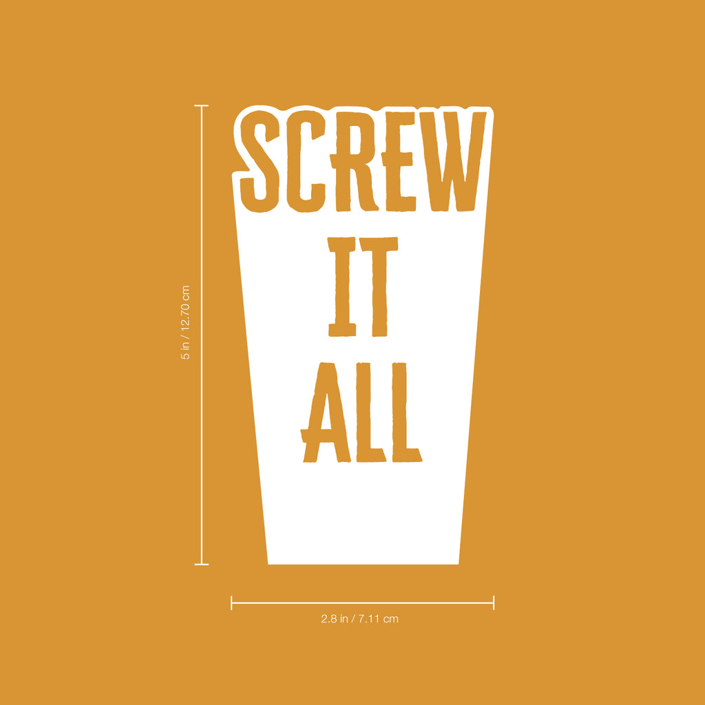 This awesome decal quote "Screw It All"; is the perfect touch for your wine bottle. Use it for a cool gift or anywhere you want to bring some extra decoration. It's a vinyl sticker that is easy to put on any smooth and dry surface. Our modern designs don't just brighten up the room; but brighten up the day. Using top of the line vinyl across all of our production allows us to be the leaders in quality and design.