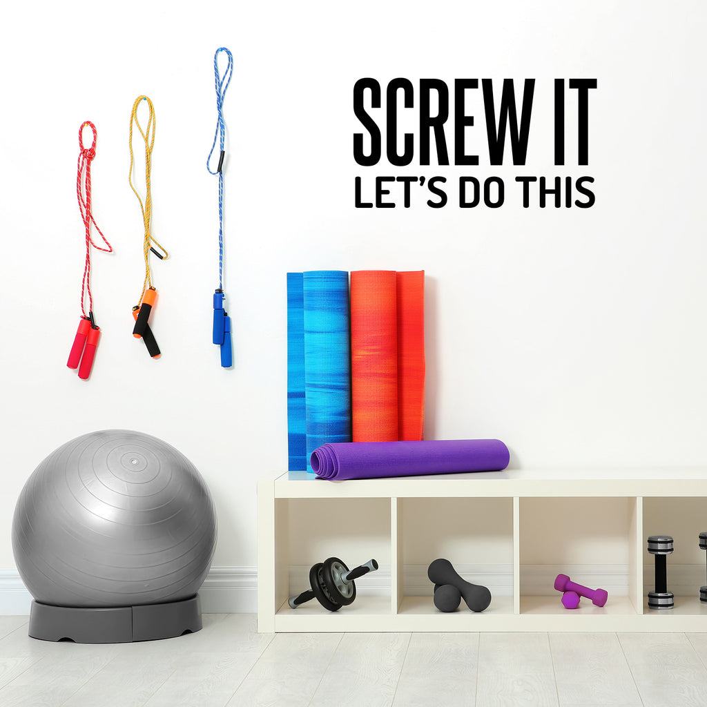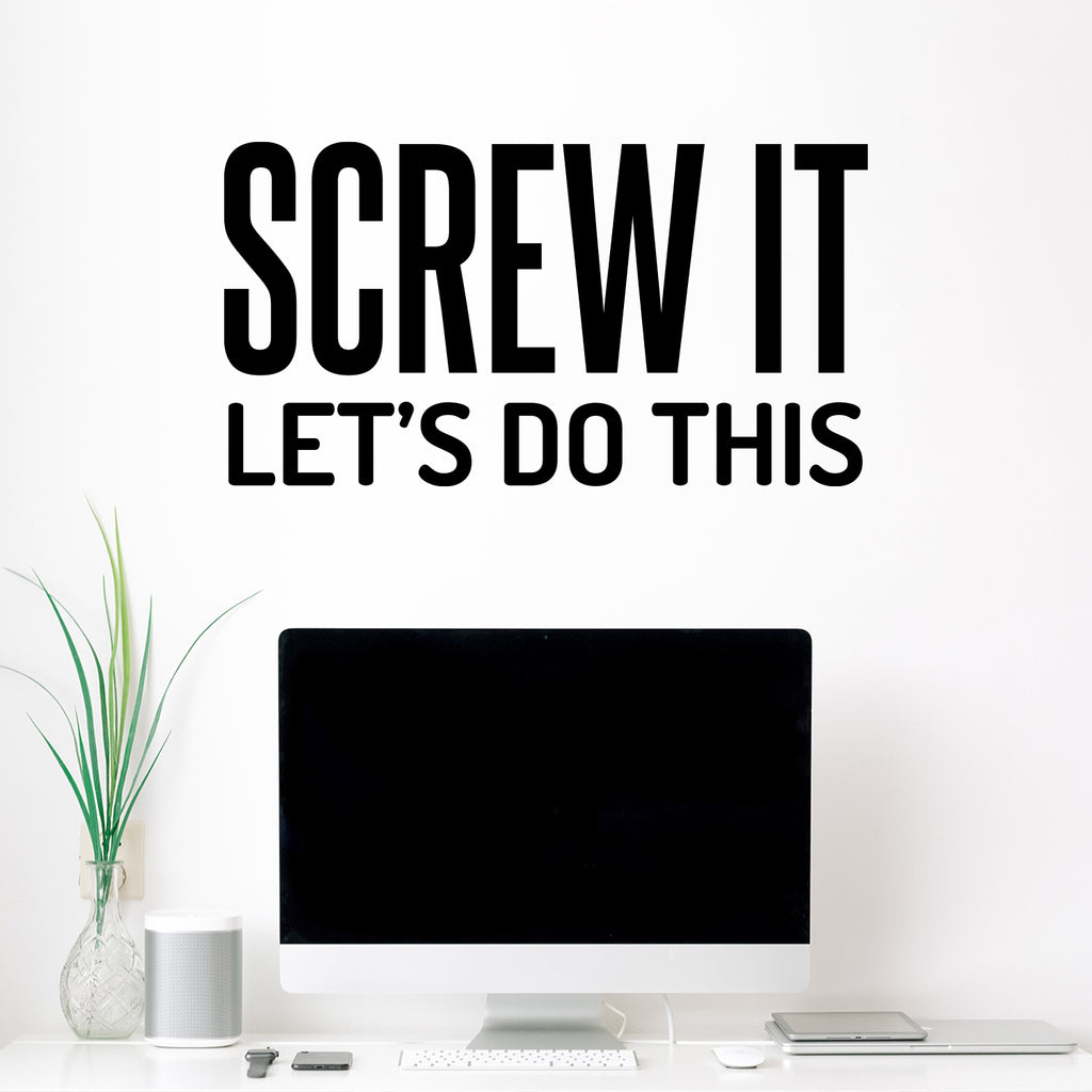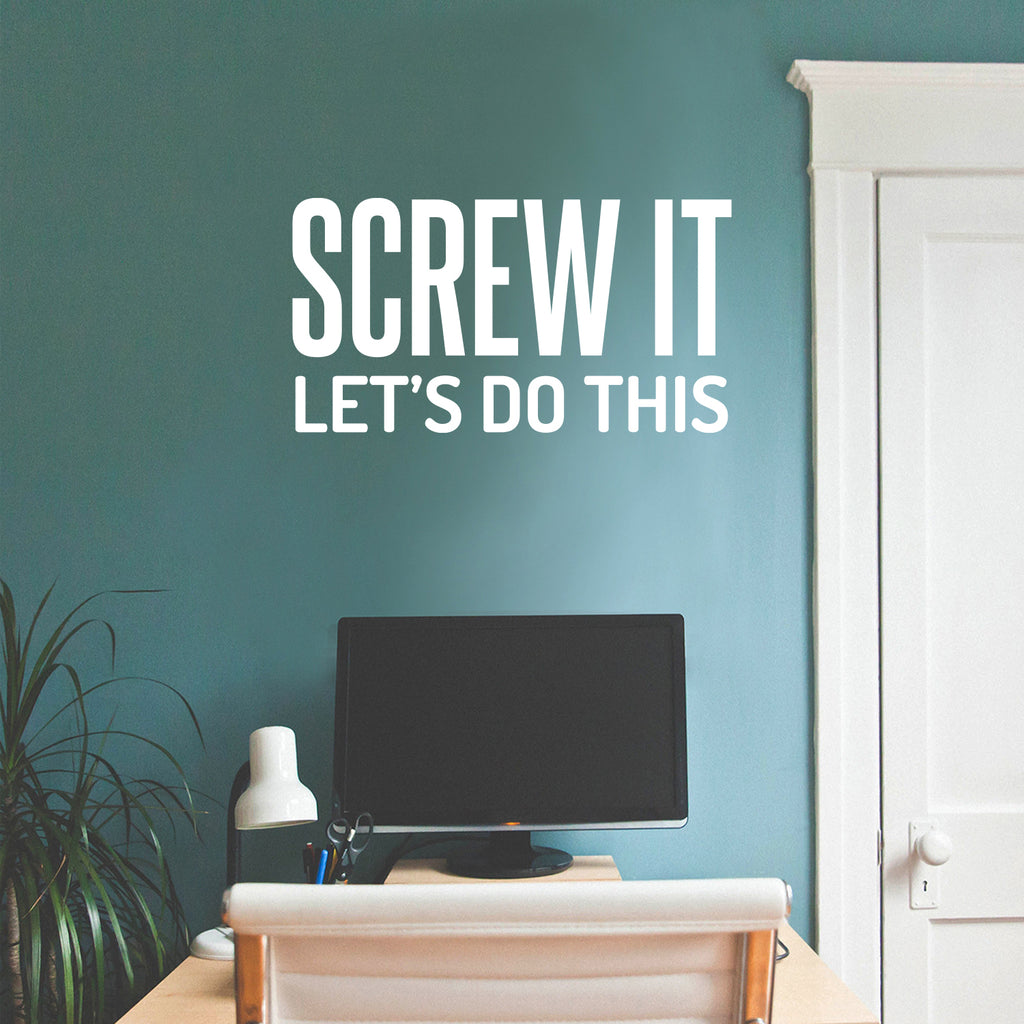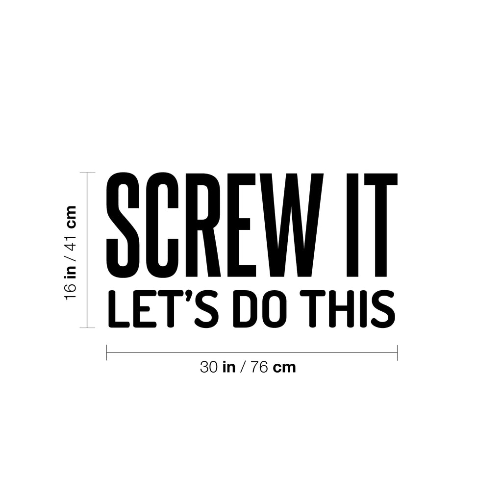 This awesome fun & positive decal quote "Screw It Let's Do This"; is the perfect touch for your fitness center or home. Use it for your home gym; yoga classes; studio dance or anywhere you want to bring some extra positive decoration. It's a vinyl sticker that is easy to put on any smooth and dry surface. Our modern designs don't just brighten up the room; but brighten up the day. Using top of the line vinyl across all of our production allows us to be the leaders in quality and design.