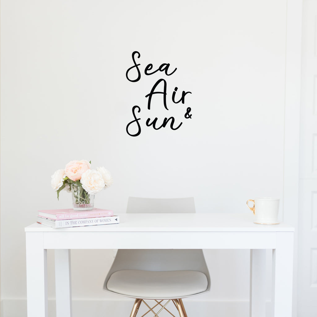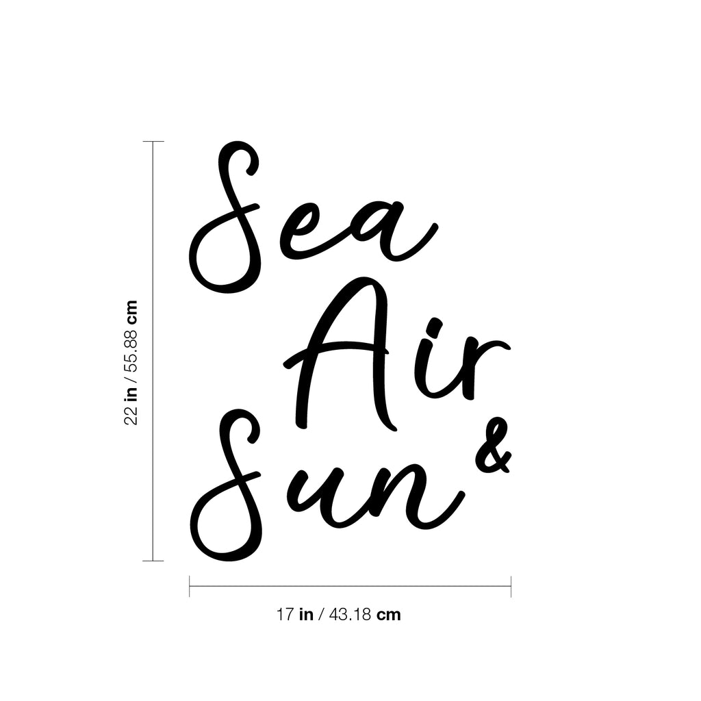 This awesome cute & optimistic decal quote "Sea; Air & Sun"; is the perfect touch for your home or gym. Use it for your kids room; playroom; office or anywhere you want to bring some positive decoration. It's a vinyl sticker that is easy to put on any smooth and dry surface. Our modern designs don't just brighten up the room; but brighten up the day. Using top of the line vinyl across all of our production allows us to be the leaders in quality and design.
