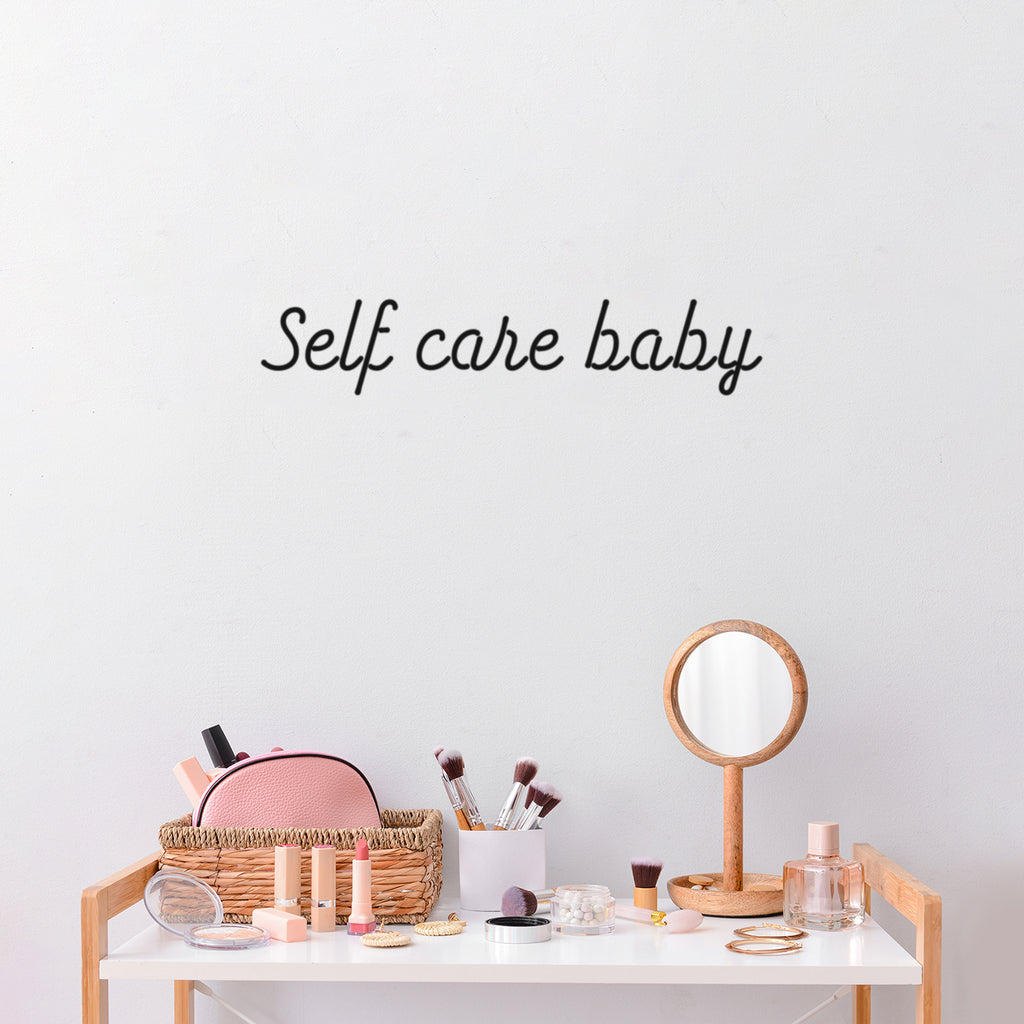 This awesome decal quote "Self Care Baby"; is the perfect touch for your home or work. Use it for your dorm room; home office or anywhere you want to bring some extra decoration. It's a vinyl sticker that is easy to put on any smooth and dry surface. Our modern designs don't just brighten up the room; but brighten up the day. Using top of the line vinyl across all of our production allows us to be the leaders in quality and design.