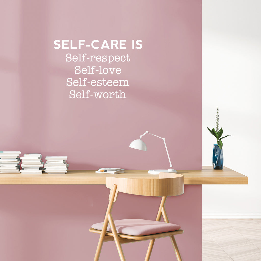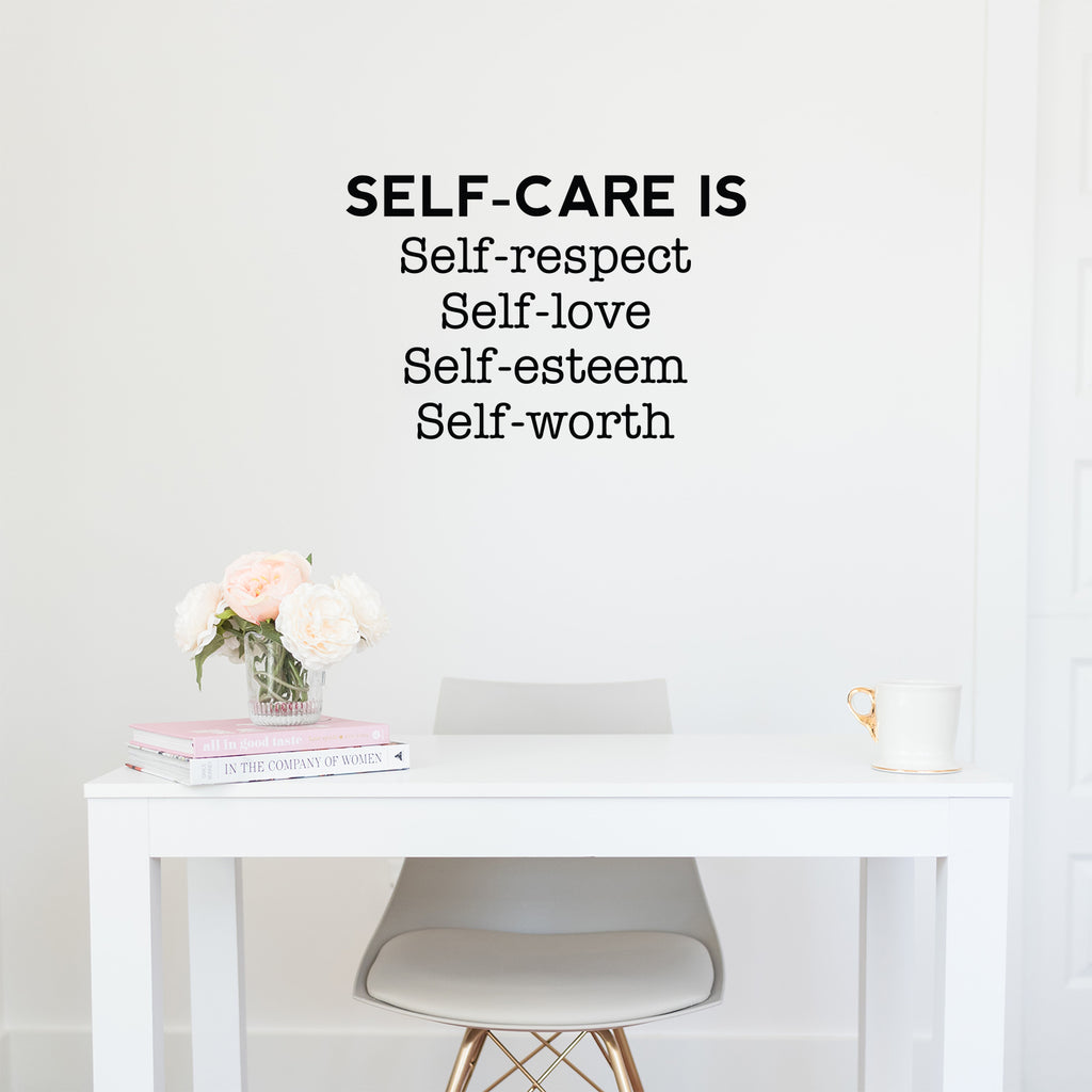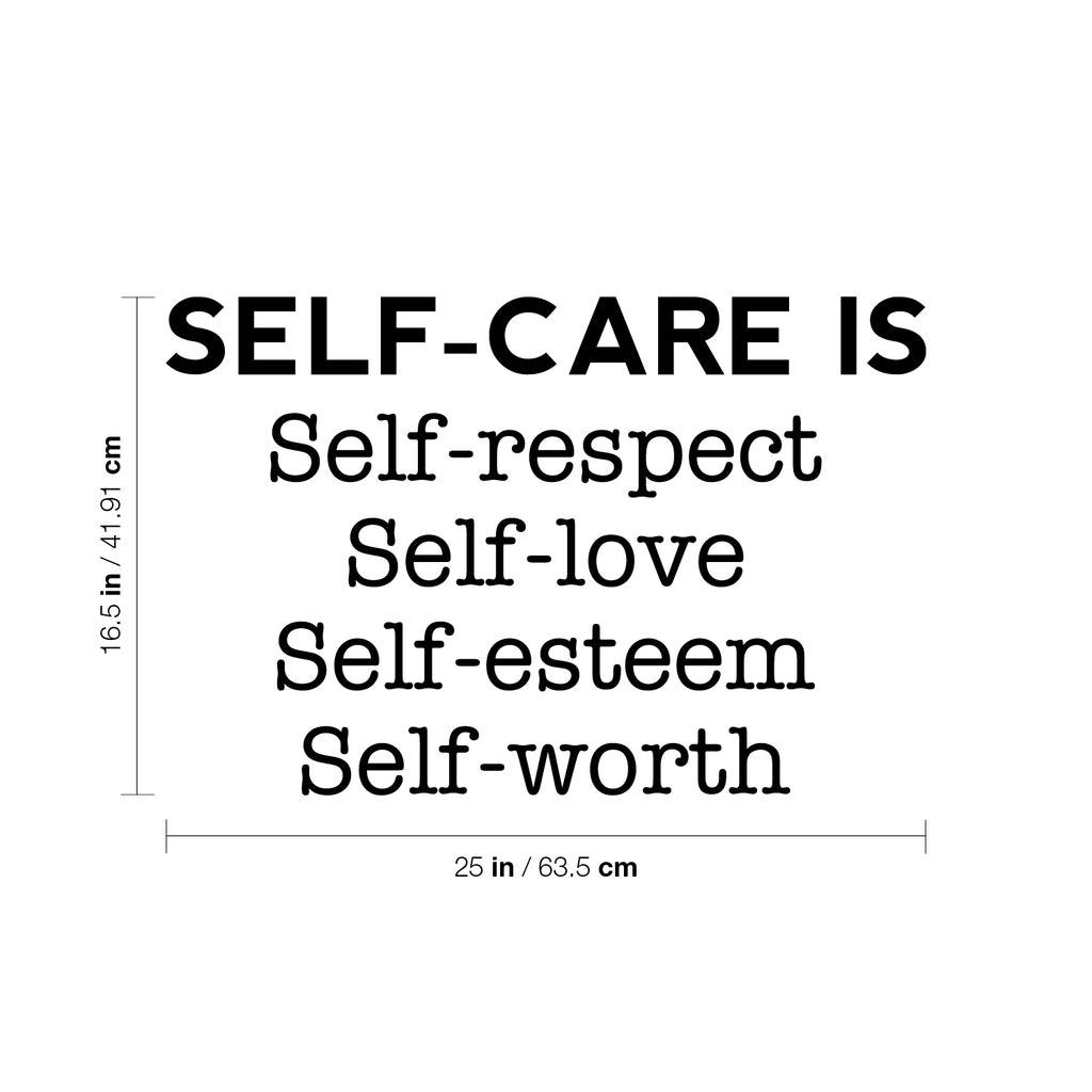 This inspirational decal quote "Self - Care Is ; Self - Respect; Self - Love; Self - Esteem; Self - Worth"; is the perfect touch for your home or office. Use it for your living room or bedroom or anywhere you want to bring some extra positive decoration. It's a vinyl sticker that is easy to put on any smooth and dry surface. Our modern designs don't just brighten up the room; but brighten up the day. Using top of the line vinyl across all of our production allows us to be the leaders in quality and design.
