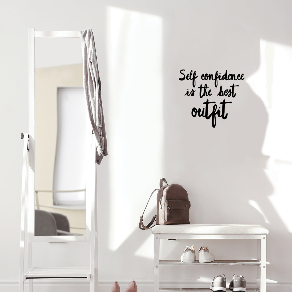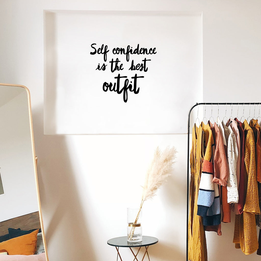 This awesome inspirational decal quote "Self Confidence Is The Best Outfit"; is the perfect touch for your home. Use it for your bedroom; boutique storefront or anywhere you want to bring some extra cute decoration. It's a vinyl sticker that is easy to put on any smooth and dry surface. Our modern designs don't just brighten up the room; but brighten up the day. Using top of the line vinyl across all of our production allows us to be the leaders in quality and design.