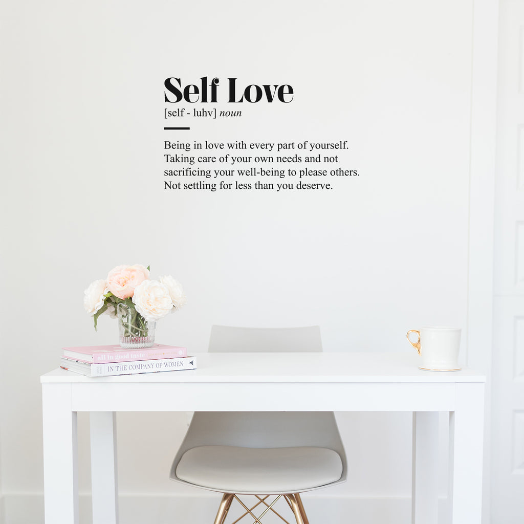 This great decal quote "Self Love Definition"; is the perfect touch for your home. Use it for your makeup area; dorm room or anywhere you want to bring some extra decoration. It's a vinyl sticker that is easy to put on any smooth and dry surface. Our modern designs don't just brighten up the room; but brighten up the day. Using top of the line vinyl across all of our production allows us to be the leaders in quality and design.