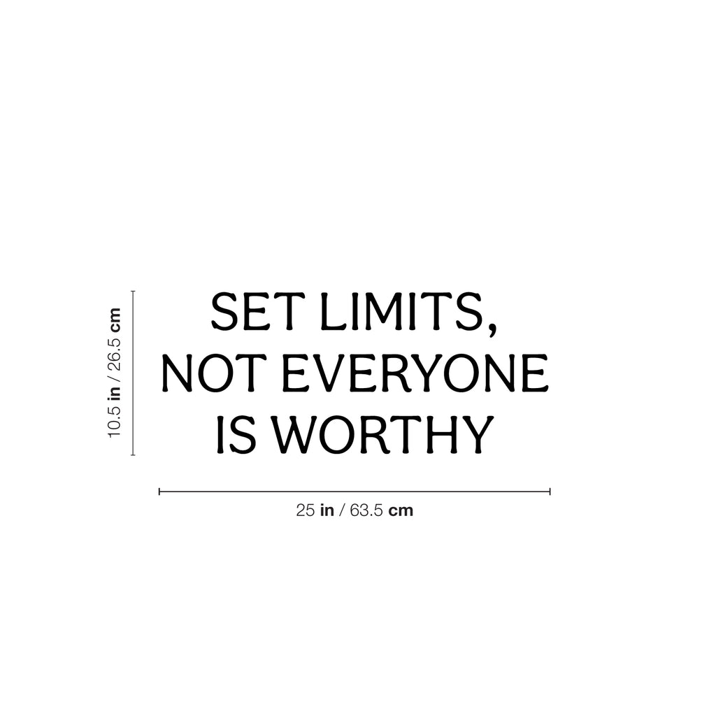 This awesome positive decal quote "Set Limits Not Everyone Is Worthy"; is the perfect touch for your home or office. Use it for your bedroom; closet; classroom or anywhere you want to bring some extra positive decoration. It's a vinyl sticker that is easy to put on any smooth and dry surface. Our modern designs don't just brighten up the room; but brighten up the day. Using top of the line vinyl across all of our production allows us to be the leaders in quality and design.