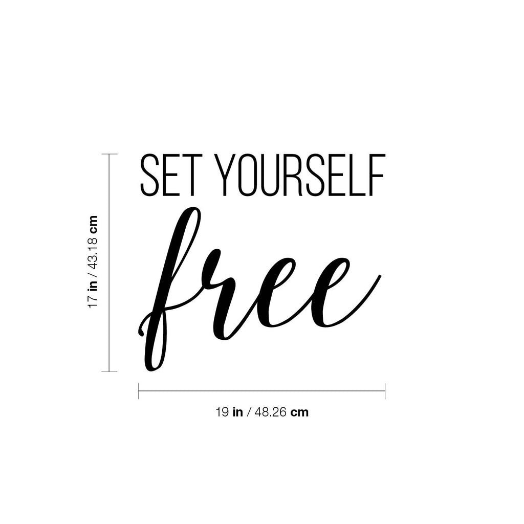 This great decal quote "Set Yourself Free"; is the perfect touch for your home. Use it for your makeup area; dorm room or anywhere you want to bring some extra decoration. It's a vinyl sticker that is easy to put on any smooth and dry surface. Our modern designs don't just brighten up the room; but brighten up the day. Using top of the line vinyl across all of our production allows us to be the leaders in quality and design.