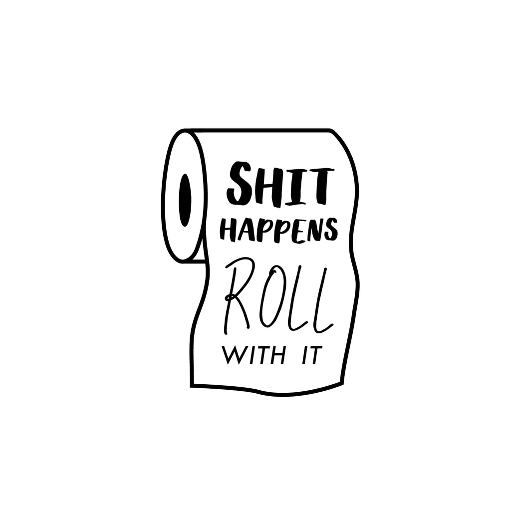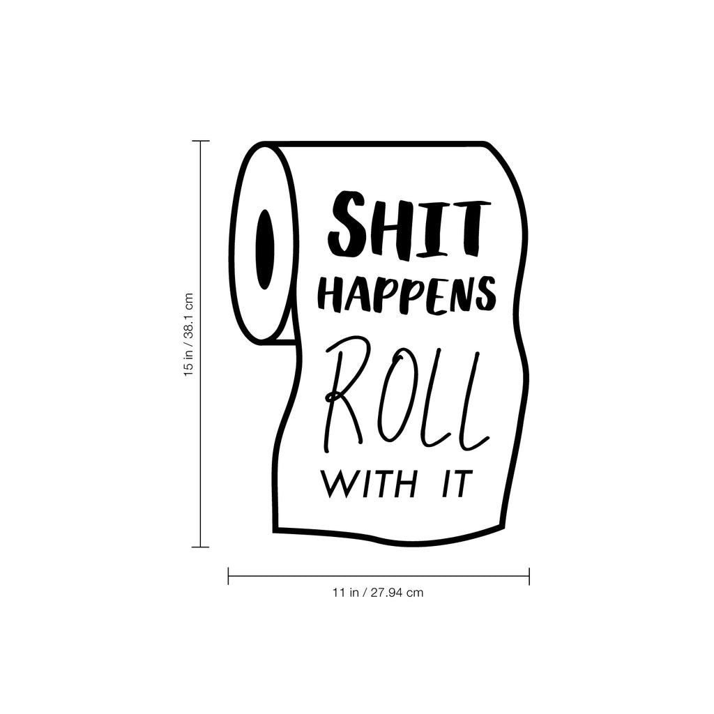 Vinyl Wall Art Decal - Sh!t Happens Roll With It - Funny Adult Humor Bedroom Bathroom Decoration - Witty Private Roll Of Paper Home Living Room Wall Peel And Stick Quotes