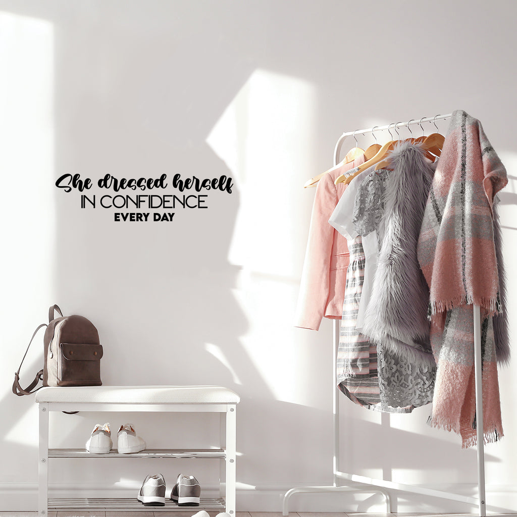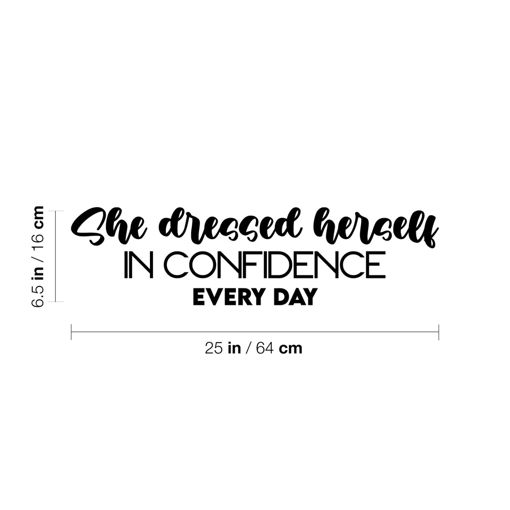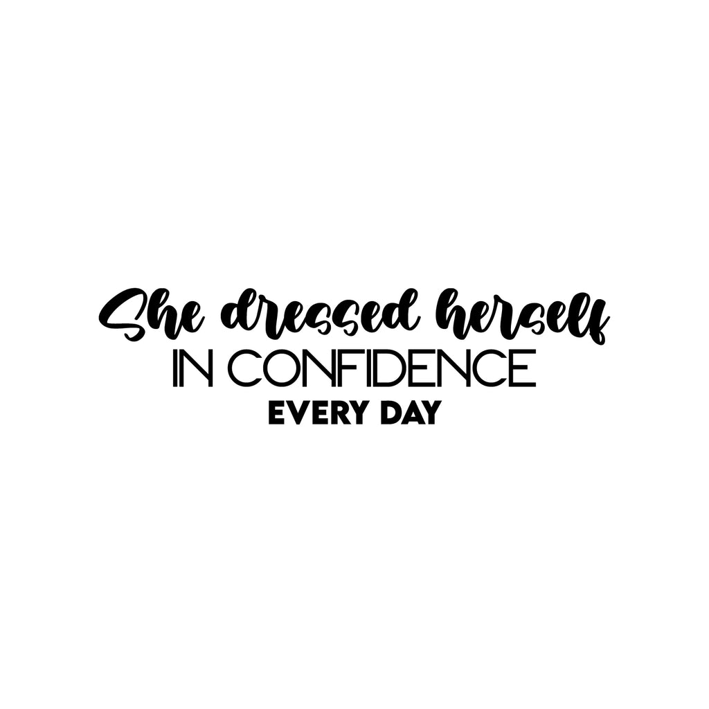 This awesome cute & inspiring decal quote "She Dressed Herself In Confidence Every Day"; is the perfect touch for your home or office. Use it for your make up mirror; bathroom; closet or anywhere you want to bring some extra cute decoration. It's a vinyl sticker that is easy to put on any smooth and dry surface. Our modern designs don't just brighten up the room; but brighten up the day. Using top of the line vinyl across all of our production allows us to be the leaders in quality and design.