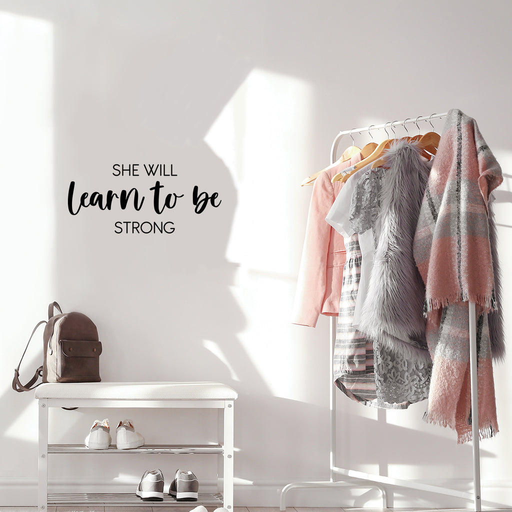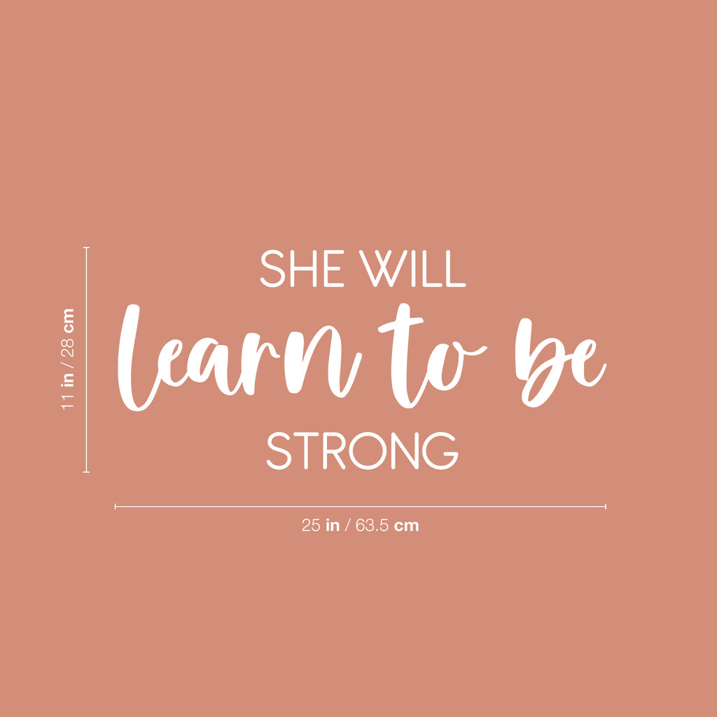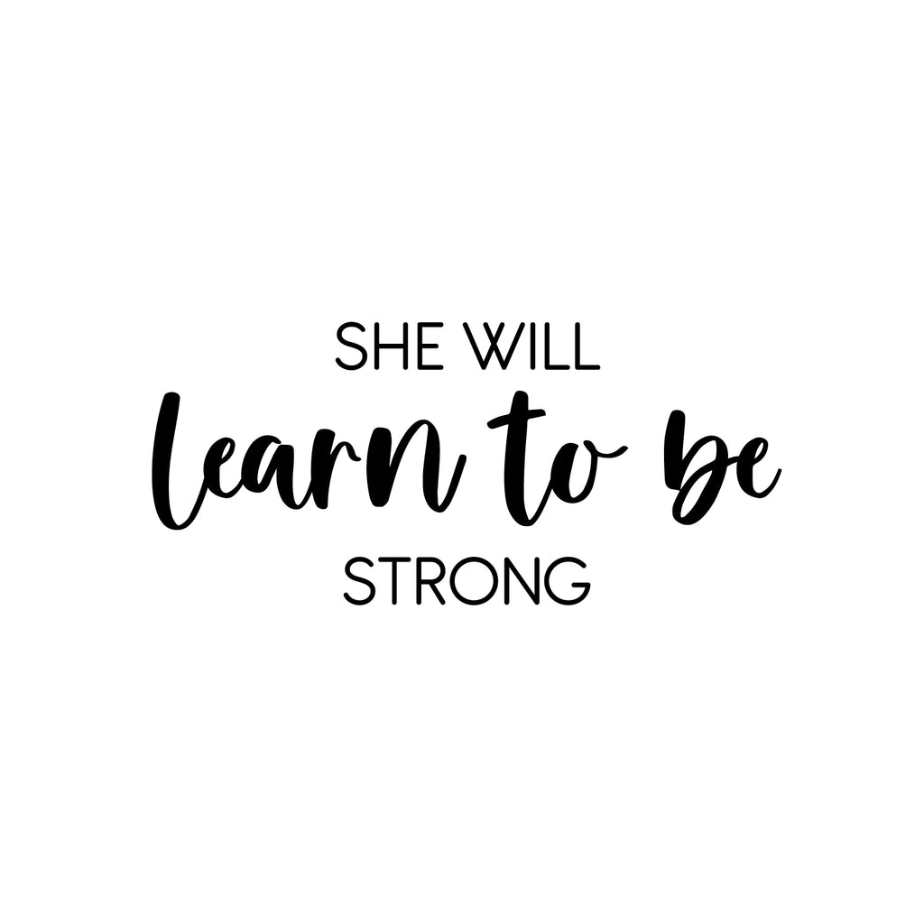 This awesome inspiring decal quote "She Will Learn To Be Strong"; is the perfect touch for your home. Use it for your living room; playroom; nursery or anywhere you want to bring some extra cute decoration. It's a vinyl sticker that is easy to put on any smooth and dry surface. Our modern designs don't just brighten up the room; but brighten up the day. Using top of the line vinyl across all of our production allows us to be the leaders in quality and design.