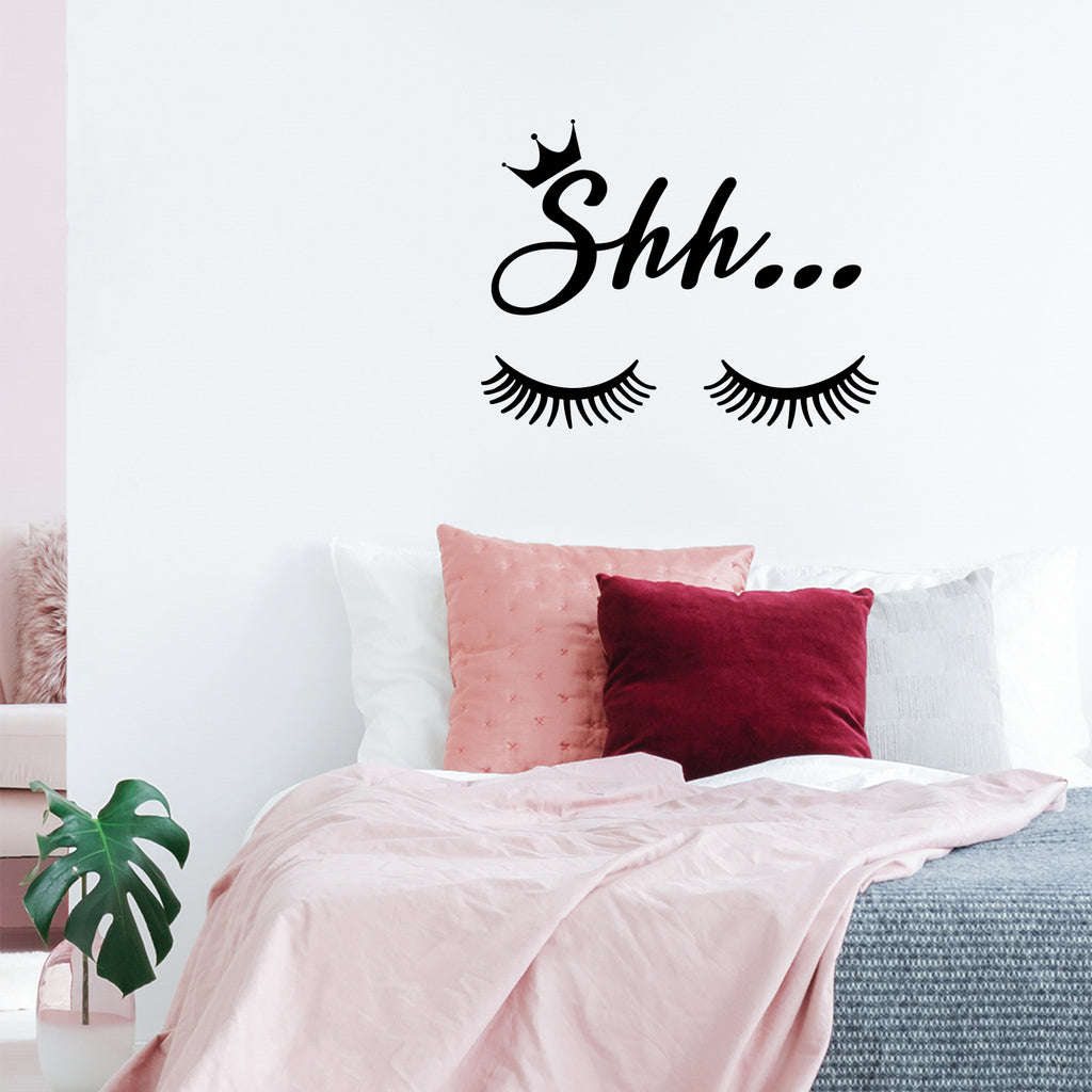 This inspirational decal quote "Shh"; is the perfect touch for your home. Use it for your living room or anywhere you want to bring some extra cute decoration. It's a vinyl sticker that is easy to put on any smooth and dry surface. Our modern designs don't just brighten up the room; but brighten up the day. Using top of the line vinyl across all of our production allows us to be the leaders in quality and design.