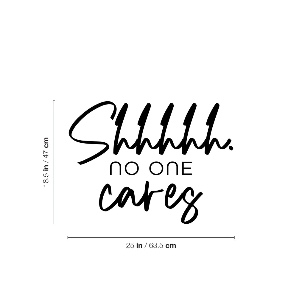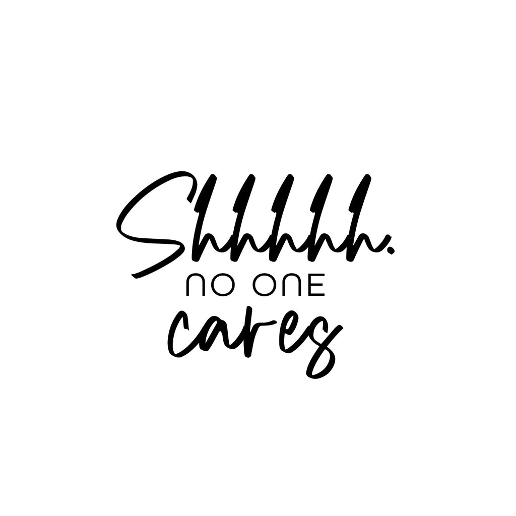 This trendy positive decal quote "Shhh No One Cares"; is the perfect touch for your home or office. Use it for your living room; boutique; beauty saloon or anywhere you want to bring some extra positive decoration. It's a vinyl sticker that is easy to put on any smooth and dry surface. Our modern designs don't just brighten up the room; but brighten up the day. Using top of the line vinyl across all of our production allows us to be the leaders in quality and design.