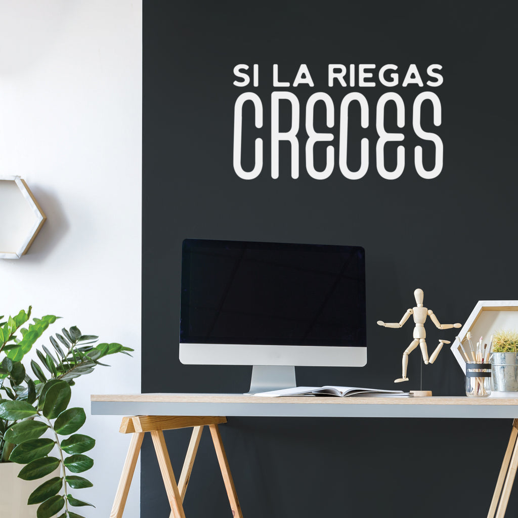 This cool positive & sarcastic decal quote "Si La Riegas Creces"; is the perfect touch for your home or office. Use it for your business; coffee shop or anywhere you want to bring some extra positive decoration. It's a vinyl sticker that is easy to put on any smooth and dry surface. Our modern designs don't just brighten up the room; but brighten up the day. Using top of the line vinyl across all of our production allows us to be the leaders in quality and design.
