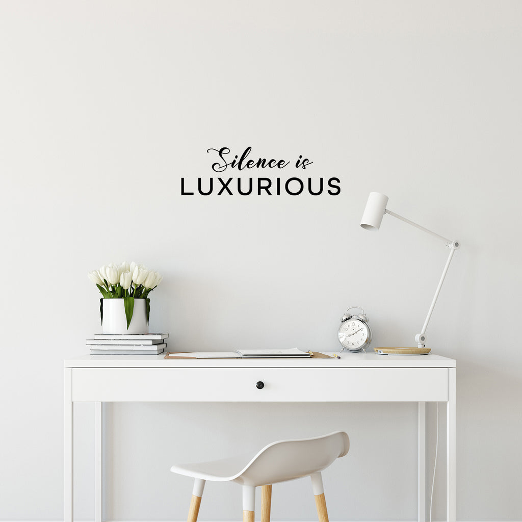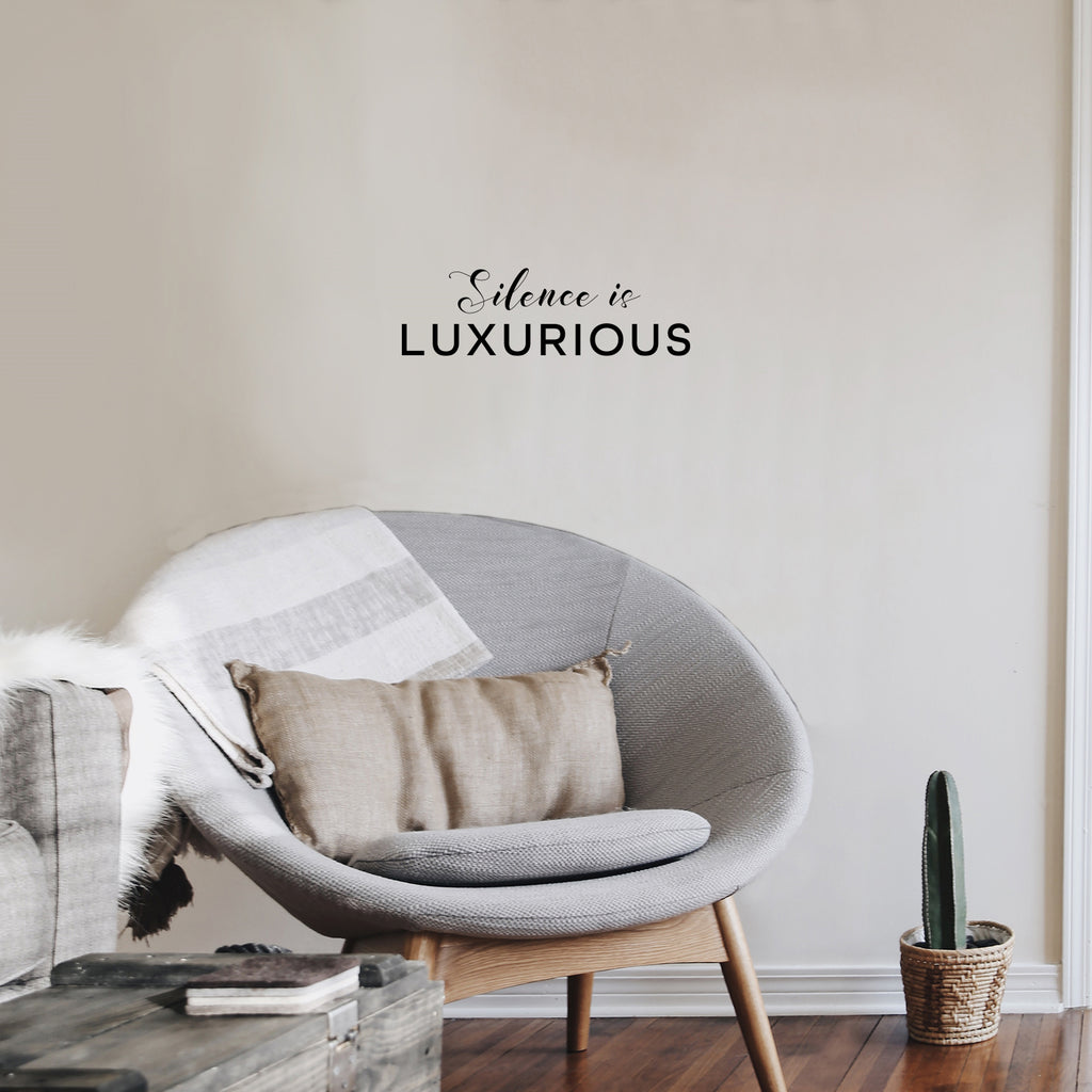 This awesome positive decal quote "Silence Is Luxurious"; is the perfect touch for your home or office. Use it for your living room; playroom; kids room or anywhere you want to bring some extra cute decoration. It's a vinyl sticker that is easy to put on any smooth and dry surface. Our modern designs don't just brighten up the room; but brighten up the day. Using top of the line vinyl across all of our production allows us to be the leaders in quality and design.