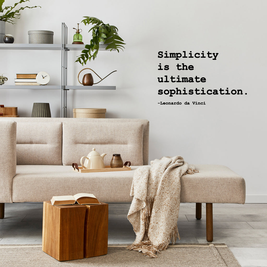 This motivational & optimistic decal quote "Simplicity Is The Ultimate Sophistication - Leonardo Da Vinci"; is the perfect touch for your home or office. Use it for your living room; playroom; kids room or anywhere you want to bring some extra cute decoration. It's a vinyl sticker that is easy to put on any smooth and dry surface. Our modern designs don't just brighten up the room; but brighten up the day. Using top of the line vinyl across all of our production allows us to be the leaders in quality and design.