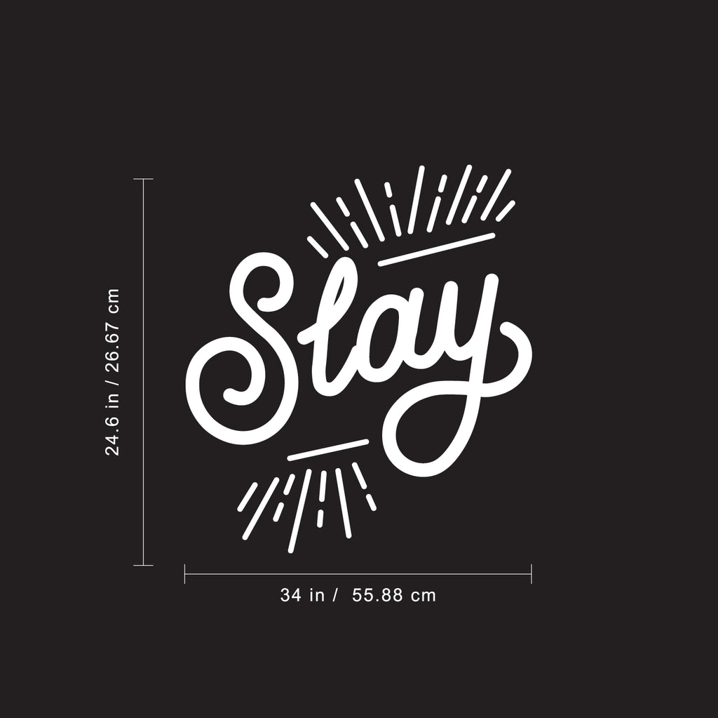 Vinyl Wall Art Decal - Slay - 24. Chic Modern Urban Home Bedroom Office Living Room Quote - Trendy Motivational Workplace Apartment Indoor Outdoor Work Decoration (24.6" x 34"; Black)