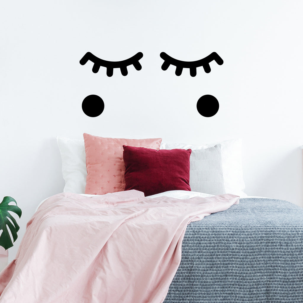 This cute decal quote "Sleep Eyes" is the perfect touch for your home. Use it for your nursery; playroom; kids room or anywhere you want to bring some extra cute decoration. It's a vinyl sticker that is easy to put on any smooth and dry surface. Our modern designs don't just brighten up the room; but brighten up the day. Using top of the line vinyl across all of our production allows us to be the leaders in quality and design.