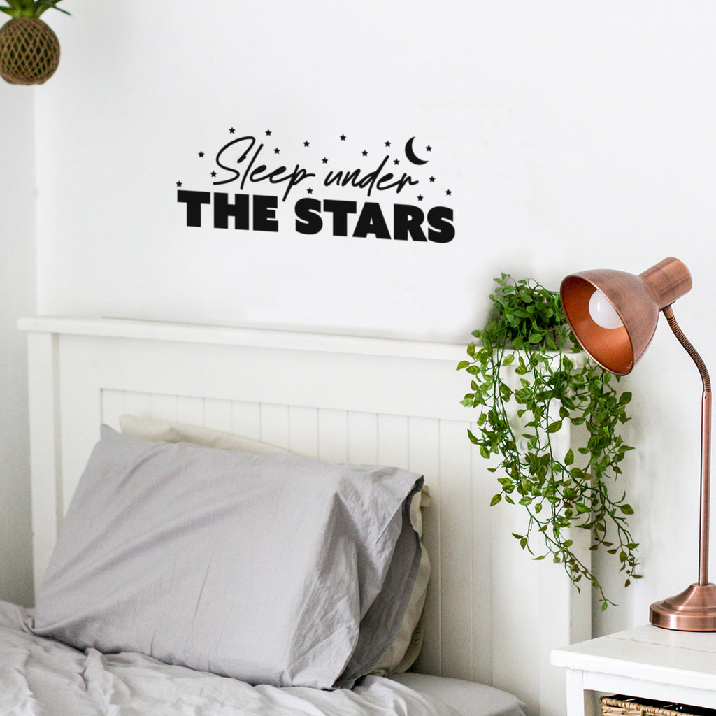 This inspirational decal quote "Sleep Under The Stars" is the perfect touch for your home. Use it for your nursery; playroom; kids room or anywhere you want to bring some extra cute decoration. It's a vinyl sticker that is easy to put on any smooth and dry surface. Our modern designs don't just brighten up the room; but brighten up the day. Using top of the line vinyl across all of our production allows us to be the leaders in quality and design.