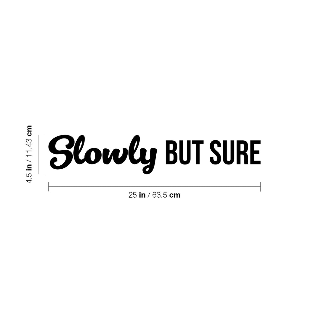 This awesome motivational decal quote "Slowly But Sure"; is the perfect touch for your home or school. Use it for your living room; playroom; kids room or anywhere you want to bring some extra cute decoration. It's a vinyl sticker that is easy to put on any smooth and dry surface. Our modern designs don't just brighten up the room; but brighten up the day. Using top of the line vinyl across all of our production allows us to be the leaders in quality and design.