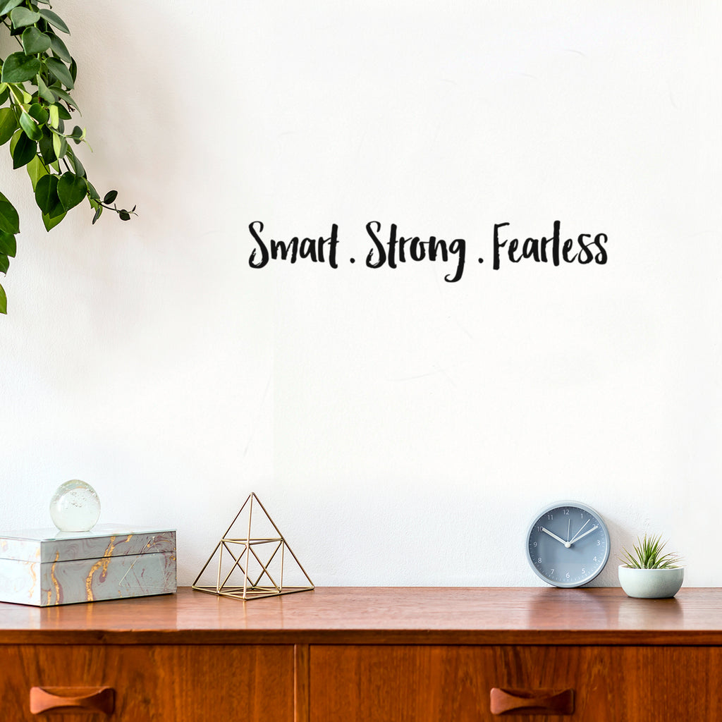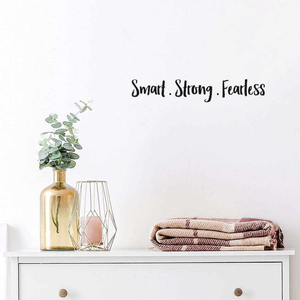 This awesome cute & fun decal quote "Smart Strong Fearless"; is the perfect touch for your home or office. Use it for your make up mirror; bathroom; closet or anywhere you want to bring some extra positive decoration. It's a vinyl sticker that is easy to put on any smooth and dry surface. Our modern designs don't just brighten up the room; but brighten up the day. Using top of the line vinyl across all of our production allows us to be the leaders in quality and design.