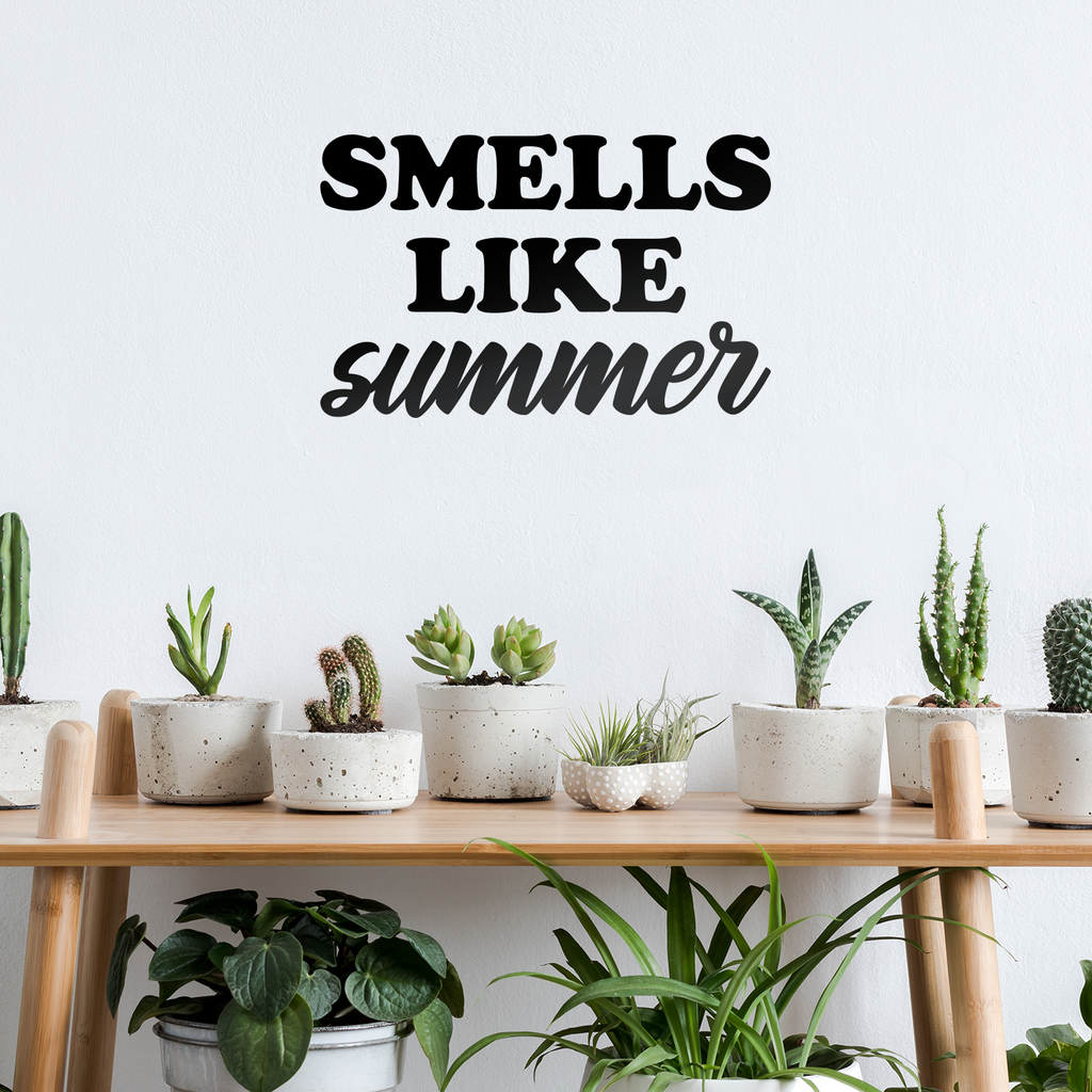 This cool "Smells Like Summer" wall art decal is the perfect touch for your home. Use it for your bedroom; living room; or anywhere you want to bring some extra decoration. It's a vinyl sticker that is easy to put on almost any smooth and dry surface. Our modern designs don't just brighten up the room; but brighten up the day. Using top of the line vinyl across all of our production allows us to be the leaders in quality and design.
