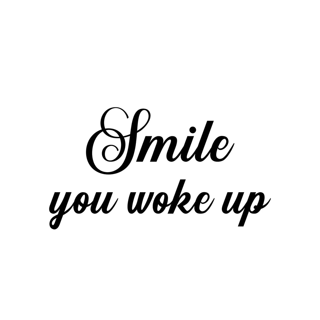 Vinyl Wall Art Decal - Smile You Woke Up - 9. Modern Fun Inspiring Lovely Good Vibes Quote Sticker For Home Kids Bedroom Playroom Classroom School Office Coffee Shop Decor