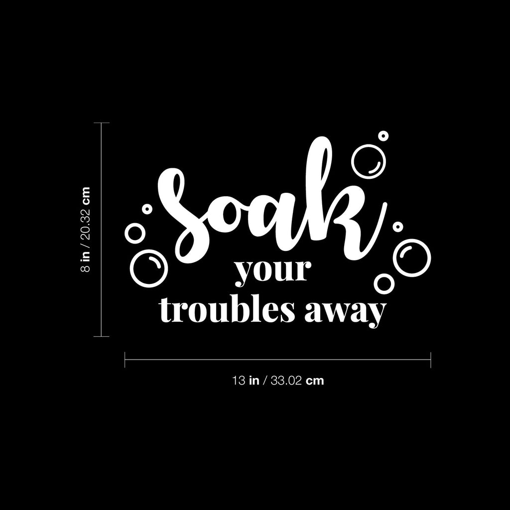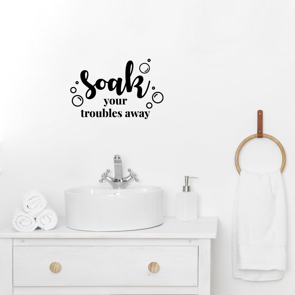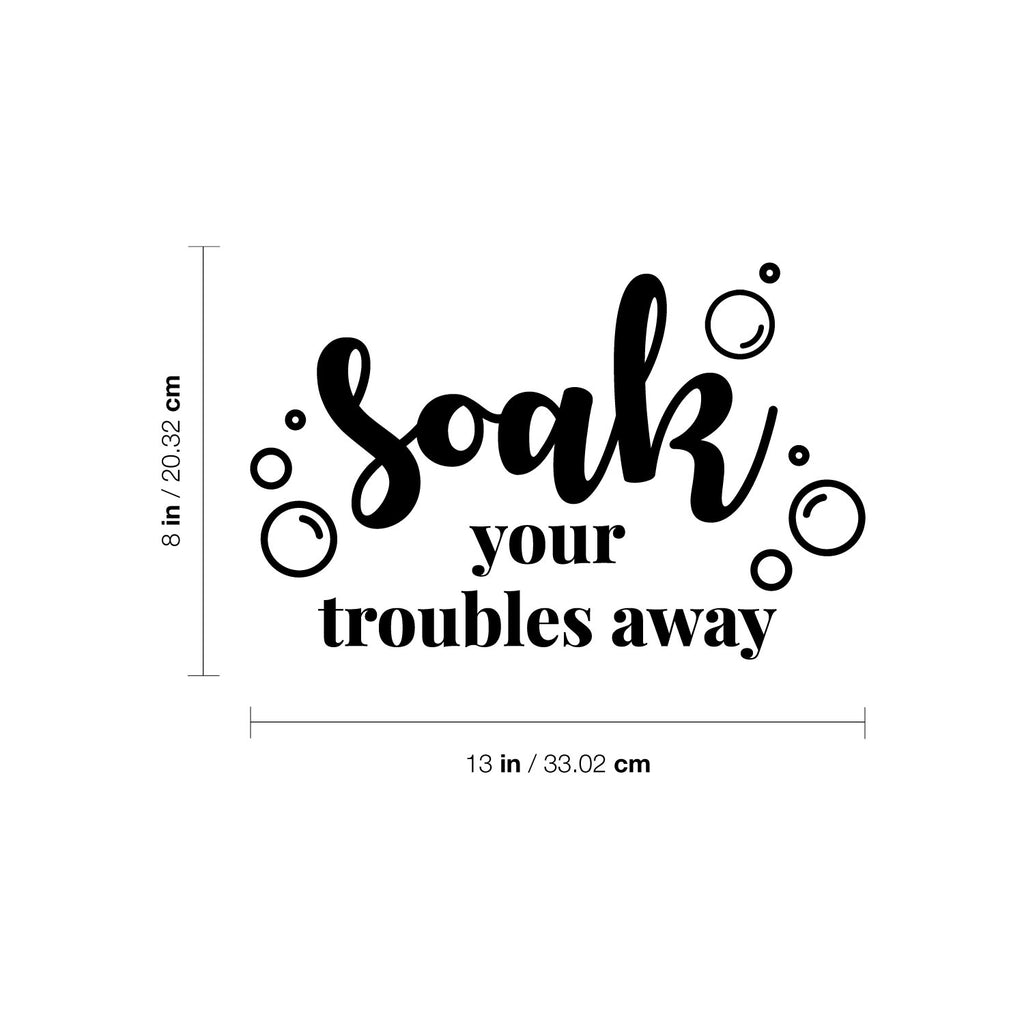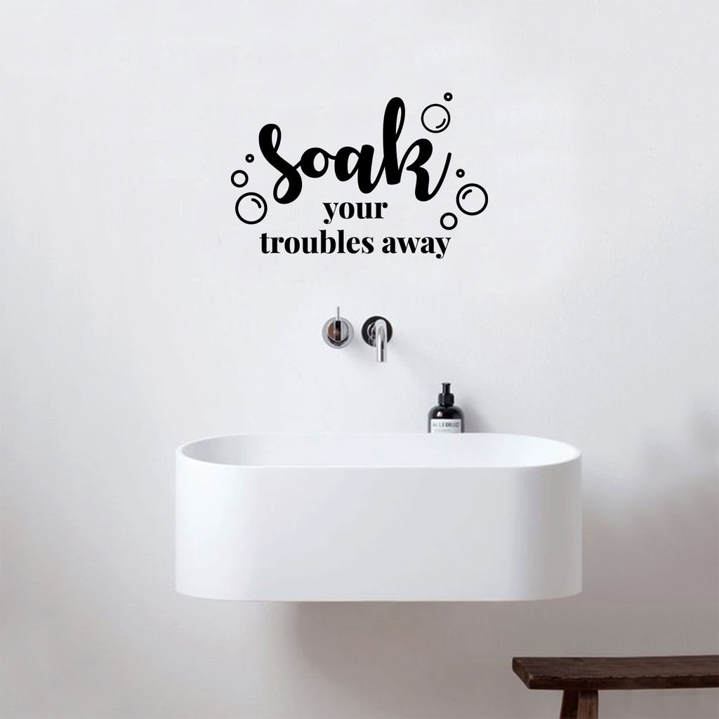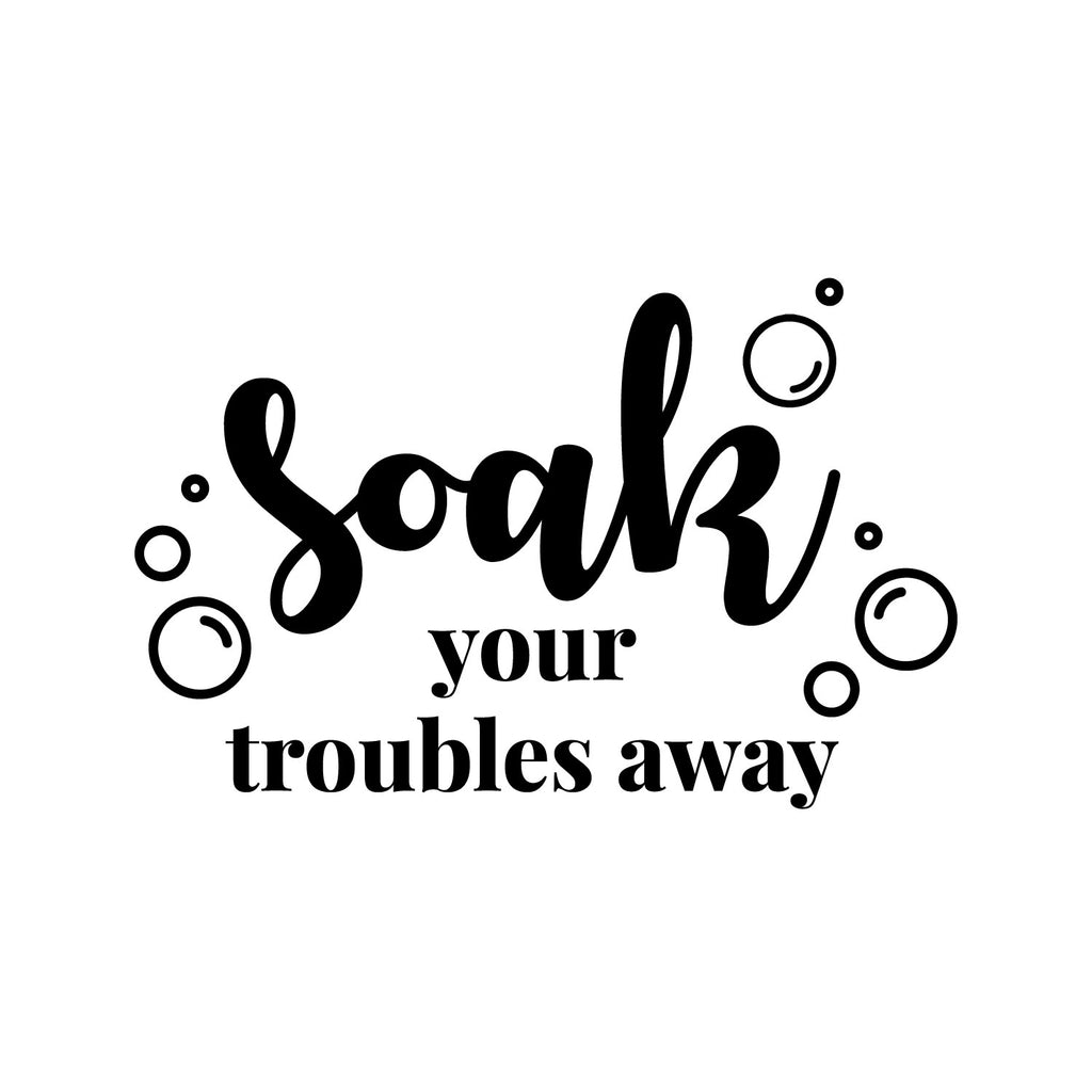 This awesome funny decal quote "Soak Your Troubles Away"; is the perfect touch for your home. Use it for your bathroom or restroom anywhere you want to bring some extra positive decoration. It's a vinyl sticker that is easy to put on any smooth and dry surface. Our modern designs don't just brighten up the room; but brighten up the day. Using top of the line vinyl across all of our production allows us to be the leaders in quality and design.