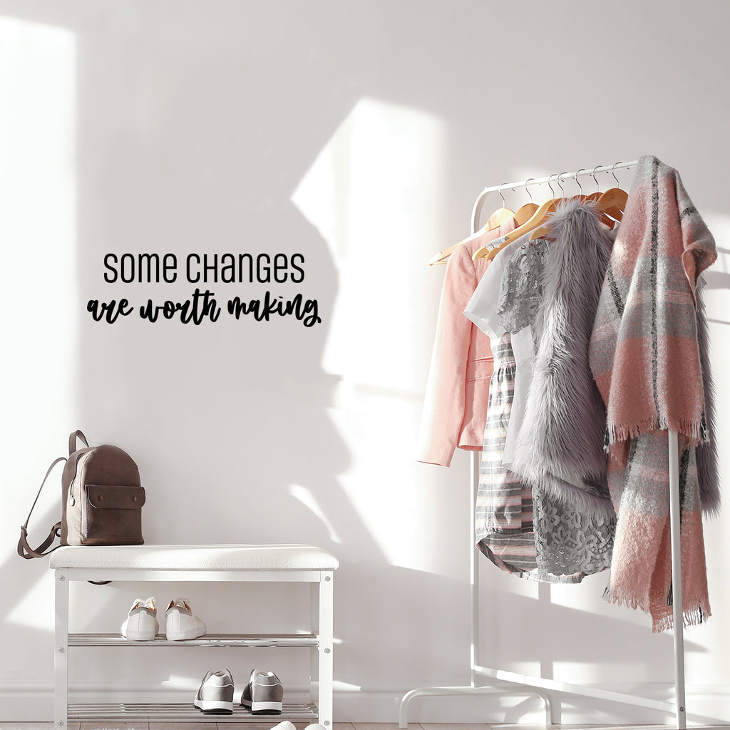 This awesome positive decal quote "Some Changes Are Worth Making"; is the perfect touch for your fitness center or home. Use it for your wellness clinic; healthy center; storefront or anywhere you want to bring some extra positive decoration. It's a vinyl sticker that is easy to put on any smooth and dry surface. Our modern designs don't just brighten up the room; but brighten up the day. Using top of the line vinyl across all of our production allows us to be the leaders in quality and design.