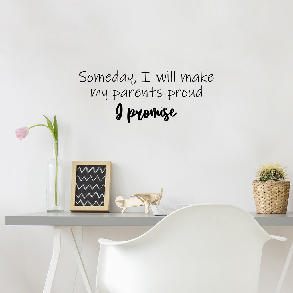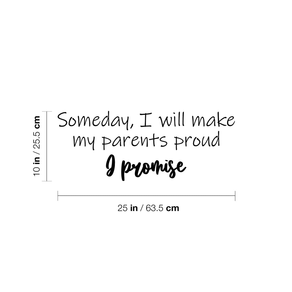 This awesome positive decal quote "Someday I Will Make My Parents Proud & Promise"; is the perfect touch for your home or school. Use it for your classroom; playroom; office or anywhere you want to bring some extra inspiring decoration. It's a vinyl sticker that is easy to put on any smooth and dry surface. Our modern designs don't just brighten up the room; but brighten up the day. Using top of the line vinyl across all of our production allows us to be the leaders in quality and design.