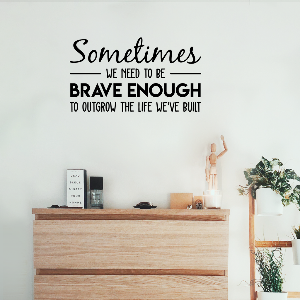 This awesome positive decal quote "Sometimes We Need To Be Brave Enough To Outgrow The Life We've Built"; is the perfect touch for your home or office. Use it for your bedroom; playroom; living room or anywhere you want to bring some extra positive decoration. It's a vinyl sticker that is easy to put on any smooth and dry surface. Our modern designs don't just brighten up the room; but brighten up the day. Using top of the line vinyl across all of our production allows us to be the leaders in quality and design.