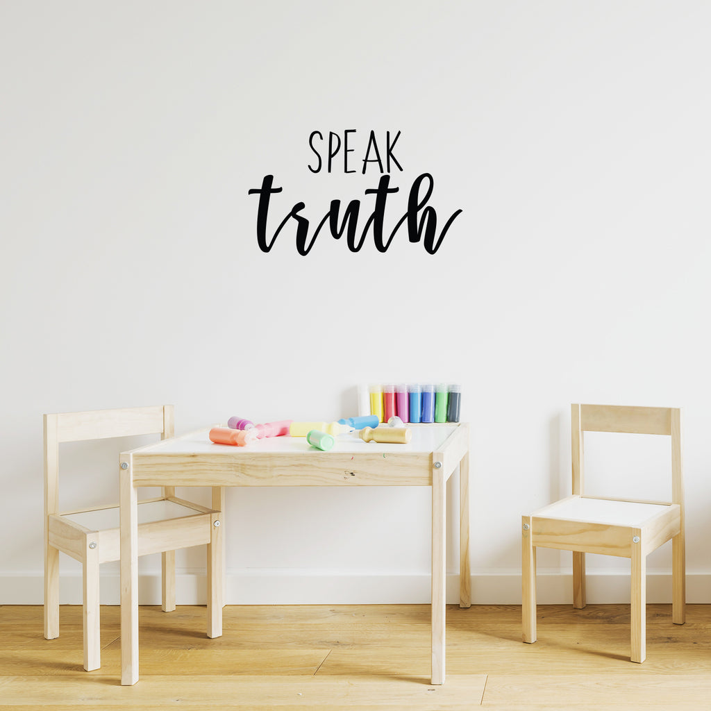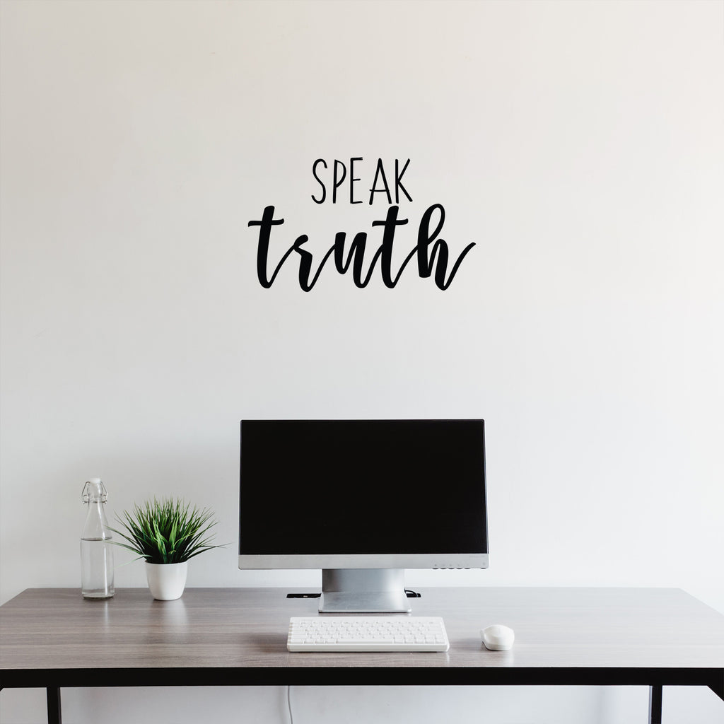 This awesome decal quote "Speak Truth"; is the perfect touch for your home or office. Use it for your bedroom; closet; living room or anywhere you want to bring some extra positive decoration. It's a vinyl sticker that is easy to put on any smooth and dry surface. Our modern designs don't just brighten up the room; but brighten up the day. Using top of the line vinyl across all of our production allows us to be the leaders in quality and design.