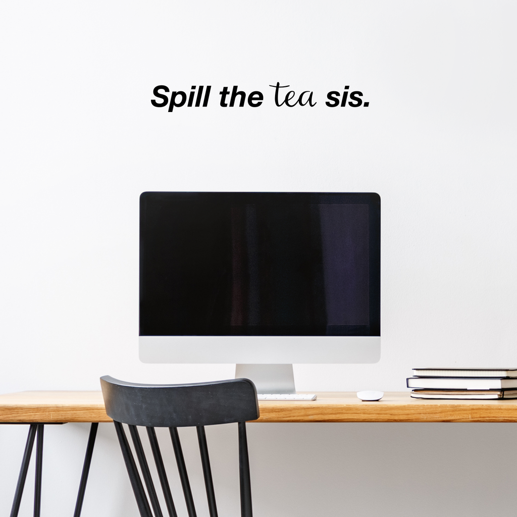 This modern "Spill The Tea Sis" life quotes wall art decal is witty and the perfect touch for both indoor and outdoor decoration. It is a vinyl sticker that is easy to put onto almost any smooth surface and really brings a room together adding the perfect amount of decoration. This witty chic vinyl decal is perfect to decorate your personal space with modern sayings if you love to chit chat or gossip with your girlfriends. Our quotes don't just brighten up the room; but brighten up the day. Using top of the line vinyl across all of our production allows us to be the leaders in quality and design.