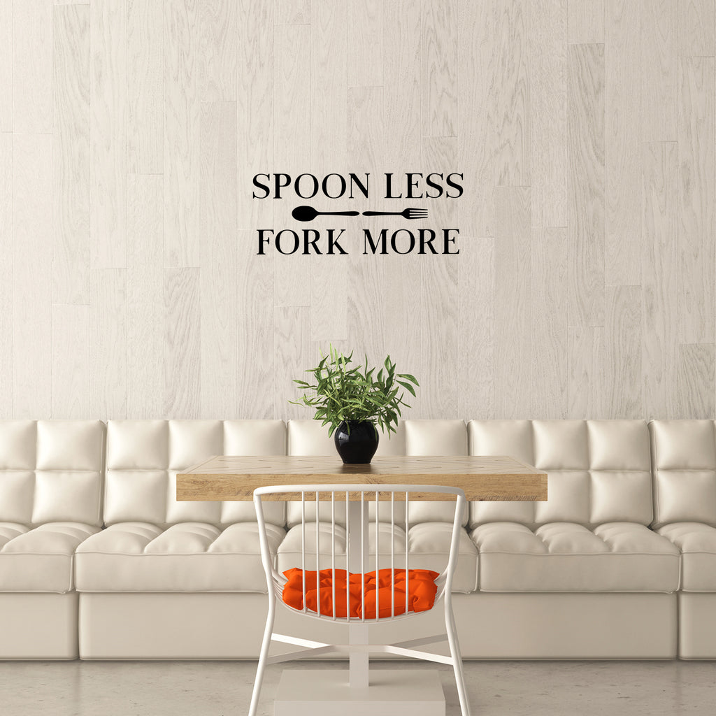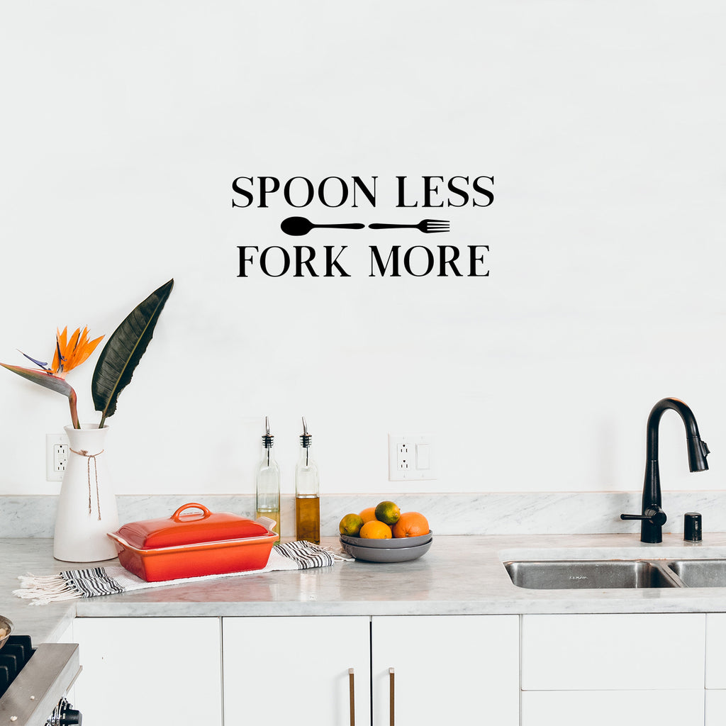 This decal quote "Spoon Less Fork More"; is the perfect touch for your home or apartment. Use it for your kitchen; dining room or living room or anywhere you want to bring some extra cute decoration. It's a vinyl sticker that is easy to put on any smooth and dry surface. Our modern designs don't just brighten up the room; but brighten up the day. Using top of the line vinyl across all of our production allows us to be the leaders in quality and design.