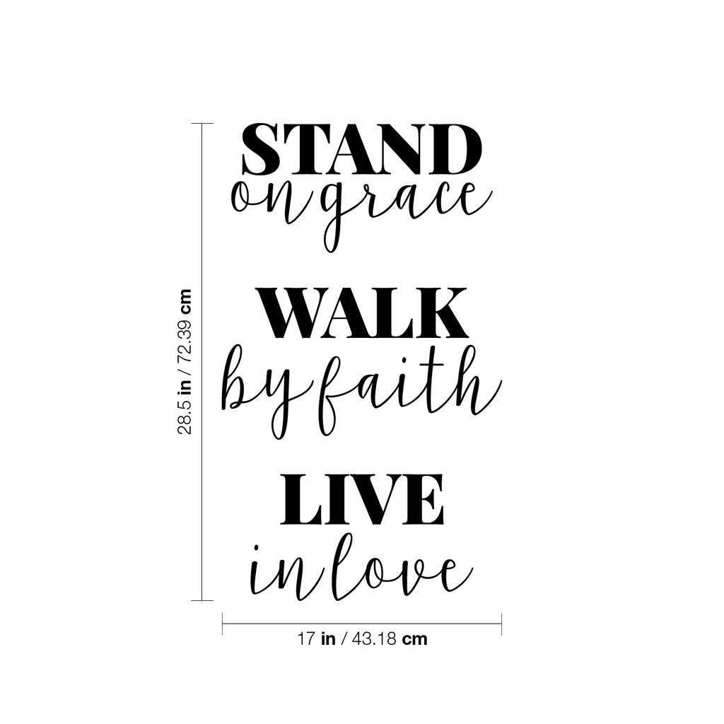 This inspirational & positive decal quote "Stand On Grace; Walk By Faith; Live In Love"; is the perfect touch for your school or office. Use it for your playroom; bedroom or anywhere you want to bring some extra inspirational decoration. It's a vinyl sticker that is easy to put on any smooth and dry surface. Our modern designs don't just brighten up the room; but brighten up the day. Using top of the line vinyl across all of our production allows us to be the leaders in quality and design.
