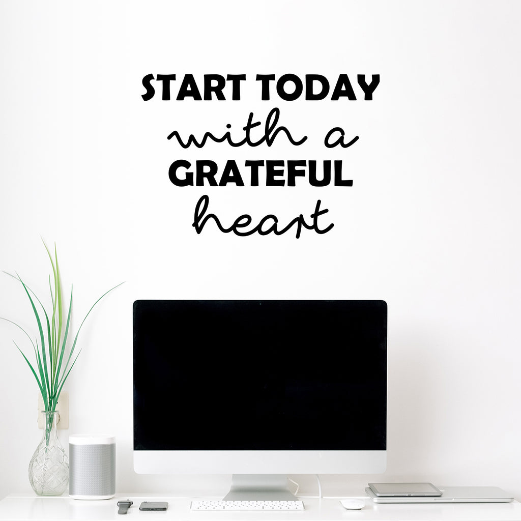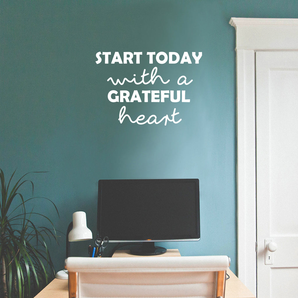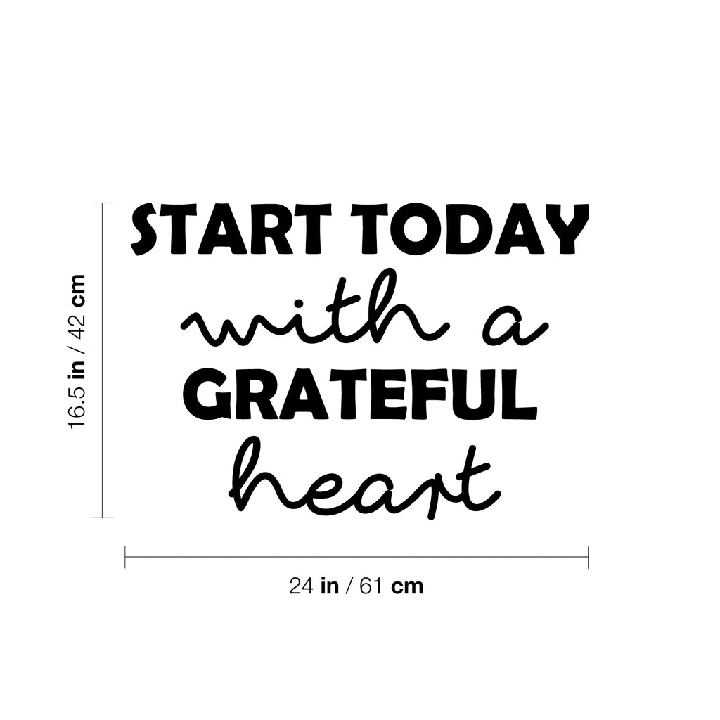 This awesome motivational decal quote "Start Today With A Grateful Heart"; is the perfect touch for your home or school. Use it for your living room; playroom; kids room or anywhere you want to bring some extra cute decoration. It's a vinyl sticker that is easy to put on any smooth and dry surface. Our modern designs don't just brighten up the room; but brighten up the day. Using top of the line vinyl across all of our production allows us to be the leaders in quality and design.