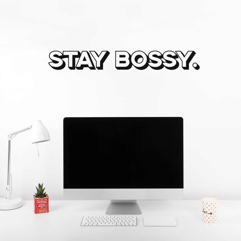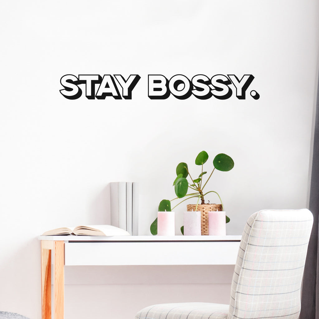 This awesome motivational decal quote "Stay Bossy."; is the perfect touch for your home or work. Use it for your dorm room; living room or anywhere you want to bring some extra girly decoration. It's a vinyl sticker that is easy to put on any smooth and dry surface. Our modern designs don't just brighten up the room; but brighten up the day. Using top of the line vinyl across all of our production allows us to be the leaders in quality and design.
