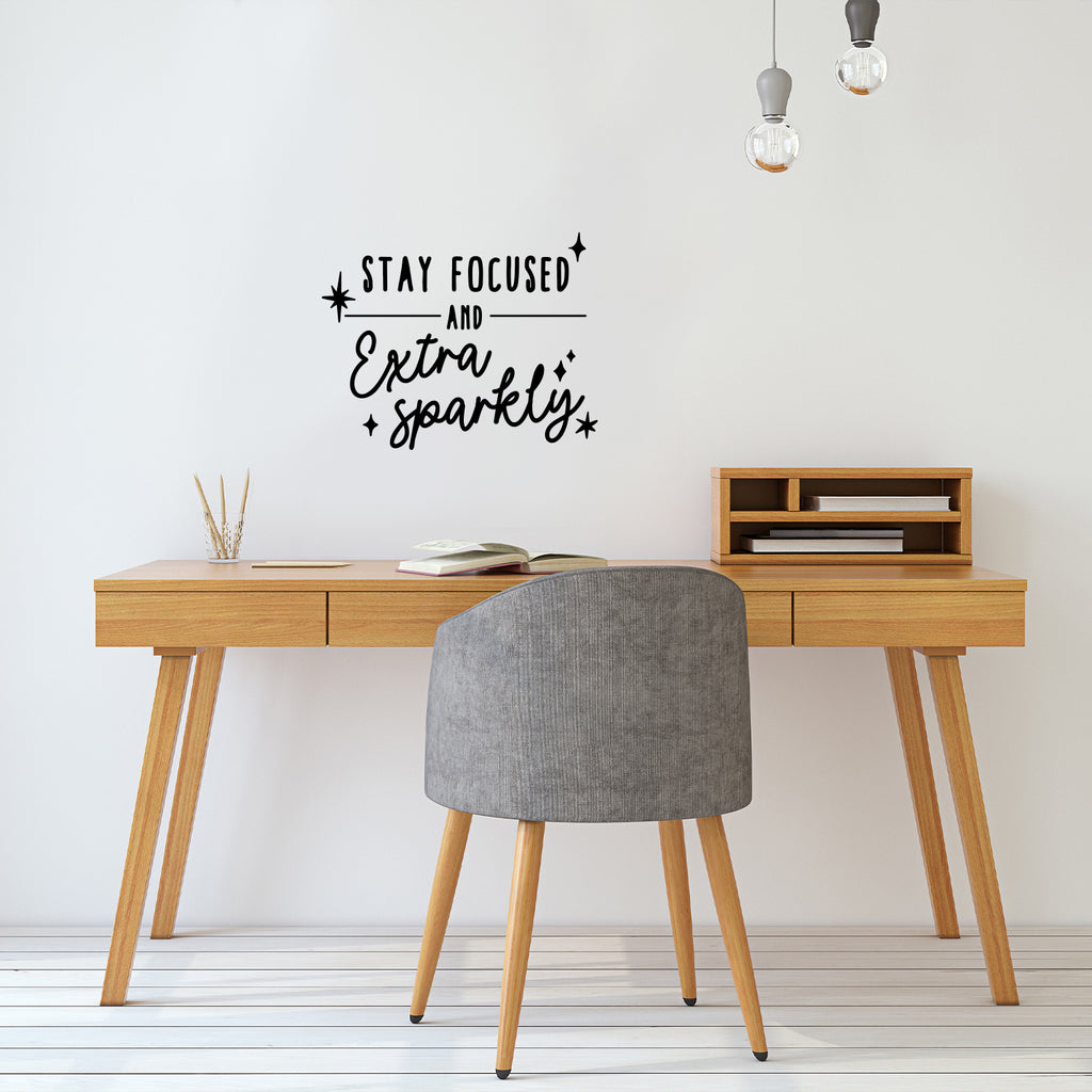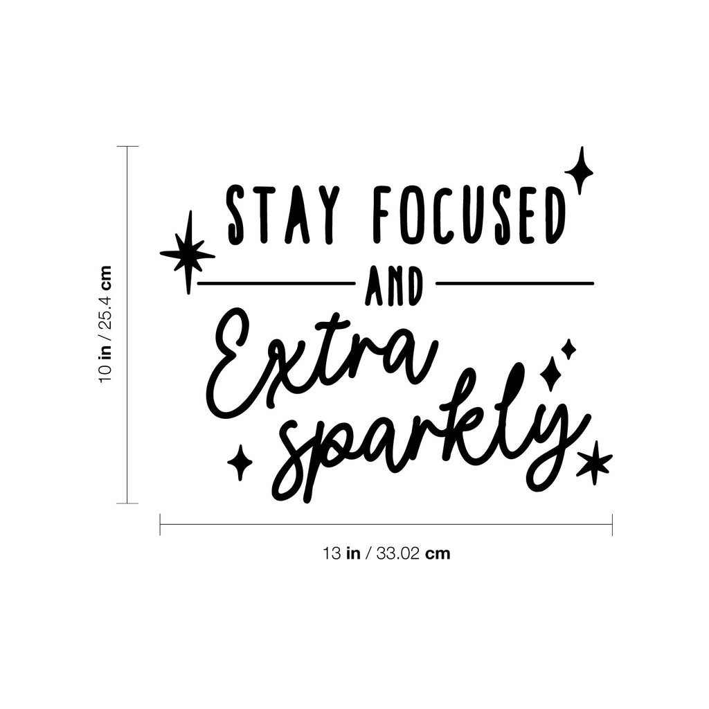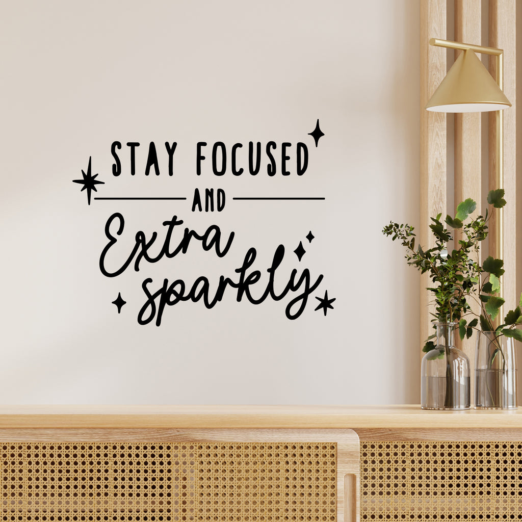 This decal quote "Stay Focused And Extra Sparkly"; is the perfect touch for your home. Use it for your home office; living room or anywhere you want to bring some extra girly decoration. It's a vinyl sticker that is easy to put on any smooth and dry surface. Our modern designs don't just brighten up the room; but brighten up the day. Using top of the line vinyl across all of our production allows us to be the leaders in quality and design.