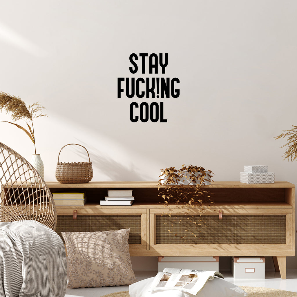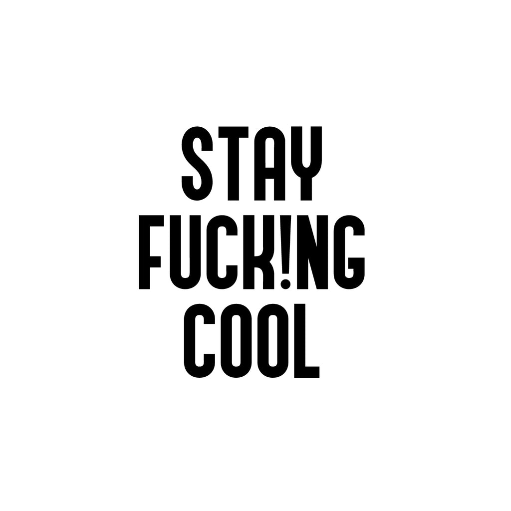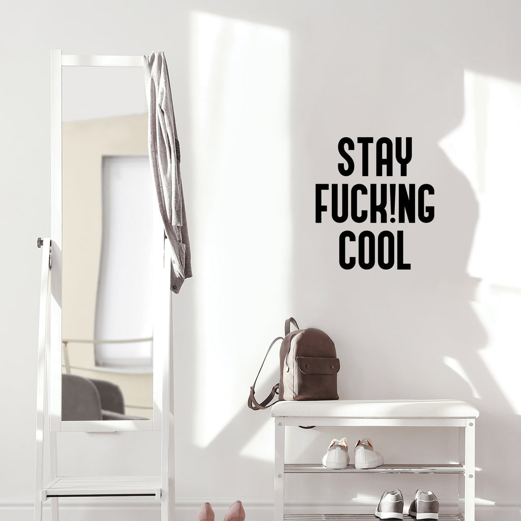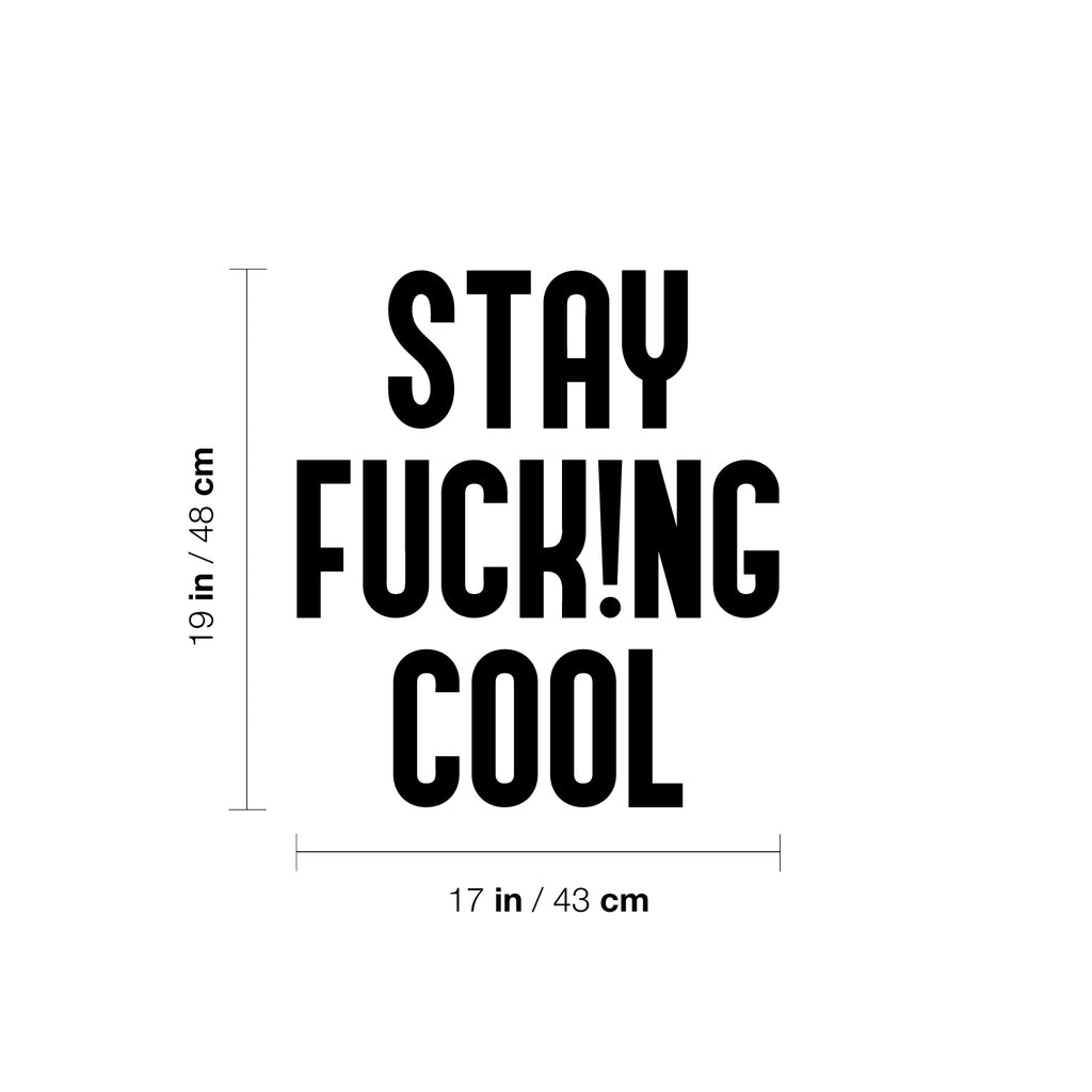 This awesome funny decal quote "Stay Fuck!ng Cool"; is the perfect touch for your home or office. Use it for your store; coffee shop or anywhere you want to bring some extra funny decoration. It's a vinyl sticker that is easy to put on any smooth and dry surface. Our modern designs don't just brighten up the room; but brighten up the day. Using top of the line vinyl across all of our production allows us to be the leaders in quality and design.