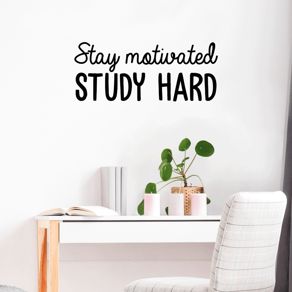 This awesome motivational decal quote "Stay Motivated Study Hard"; is the perfect touch for your home or a school. Use it for your bedroom; office; classroom or anywhere you want to bring some extra positive decoration. It's a vinyl sticker that is easy to put on any smooth and dry surface. Our modern designs don't just brighten up the room; but brighten up the day. Using top of the line vinyl across all of our production allows us to be the leaders in quality and design.