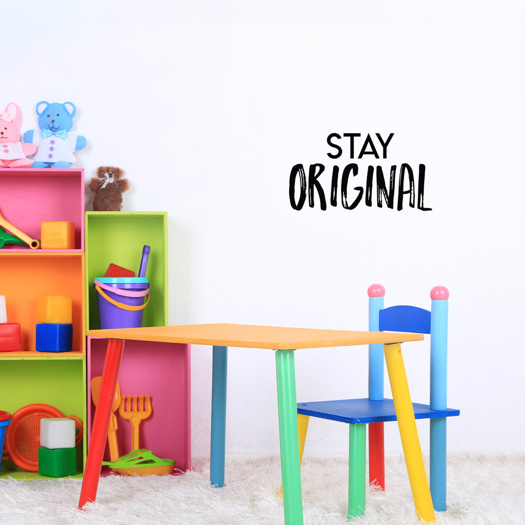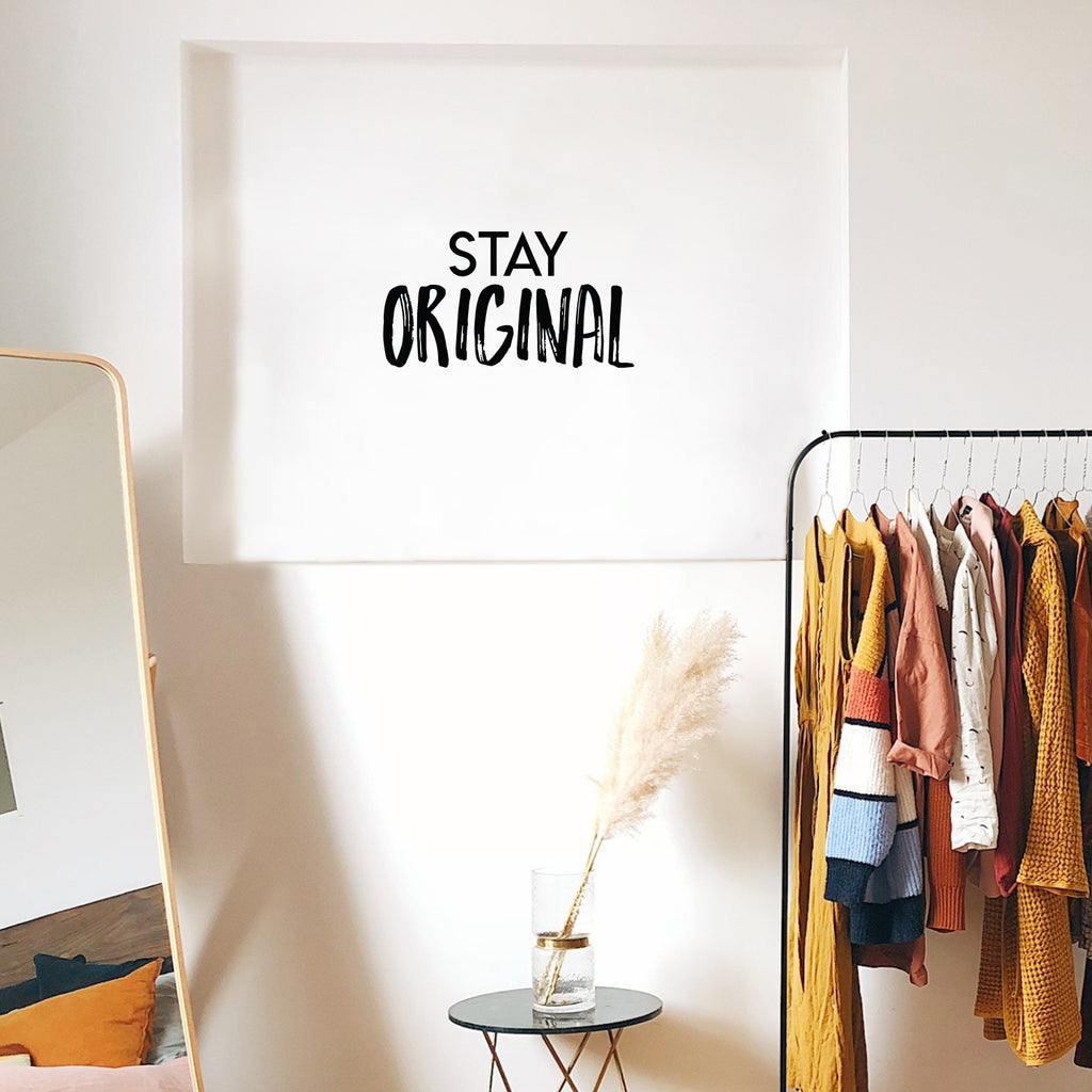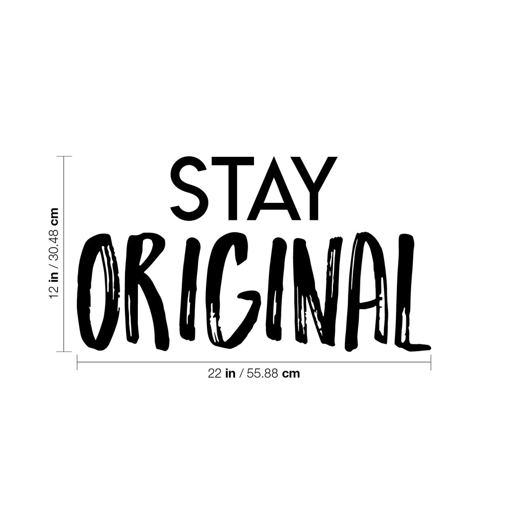This awesome decal quote "Stay Original"; is the perfect touch for your home or work. Use it for your bedroom; closet; living room or anywhere you want to bring some extra positive decoration. It's a vinyl sticker that is easy to put on any smooth and dry surface. Our modern designs don't just brighten up the room; but brighten up the day. Using top of the line vinyl across all of our production allows us to be the leaders in quality and design.