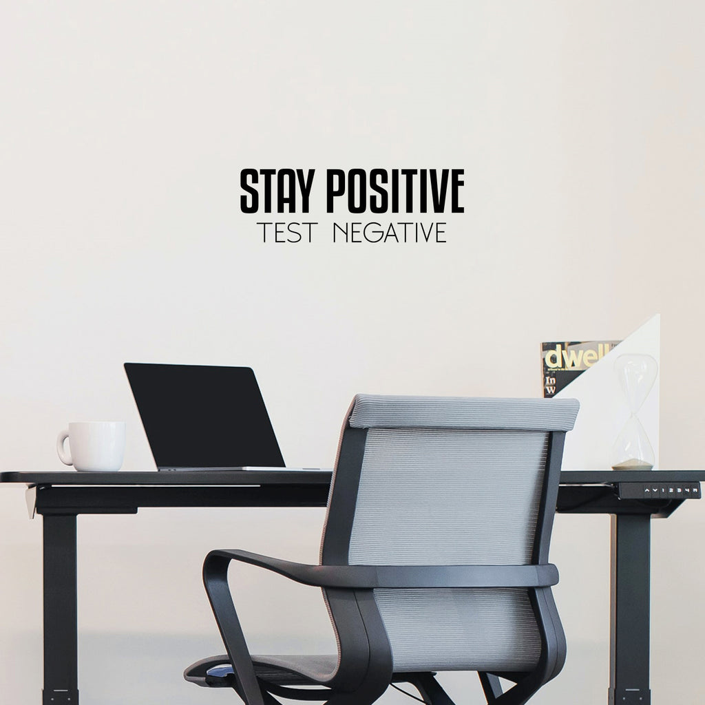 This awesome motivating decal quote Stay Positive Test Negative"; is the perfect touch for your home or school. Use it for your living room; playroom; kids room or anywhere you want to bring some extra cute decoration. It's a vinyl sticker that is easy to put on any smooth and dry surface. Our modern designs don't just brighten up the room; but brighten up the day. Using top of the line vinyl across all of our production allows us to be the leaders in quality and design.