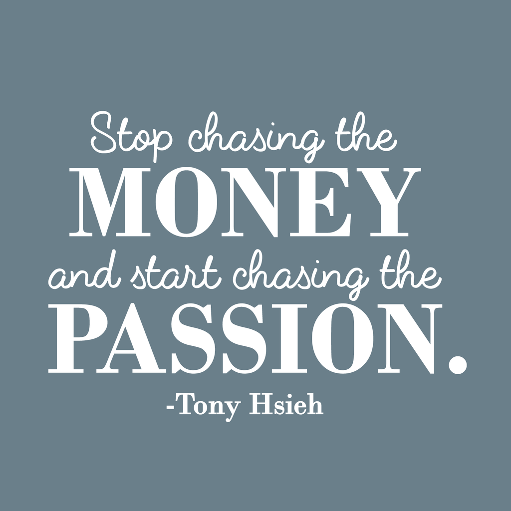 This modern inspirational decal quote "Stop Chasing The Money And Start Chasing The Passsion - Tony Hsieh"; is the perfect touch for your home or workplace. Use it for your bedroom; living room; office or anywhere you want to bring some extra decoration. It's a vinyl sticker that is easy to put on any smooth and dry surface. Our modern designs don't just brighten up the room; but brighten up the day. Using top of the line vinyl across all of our production allows us to be the leaders in quality and design.