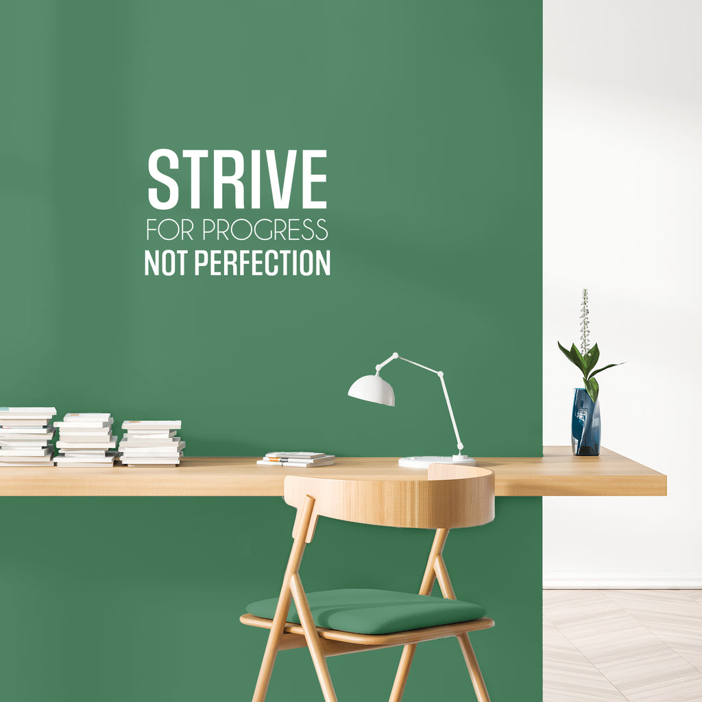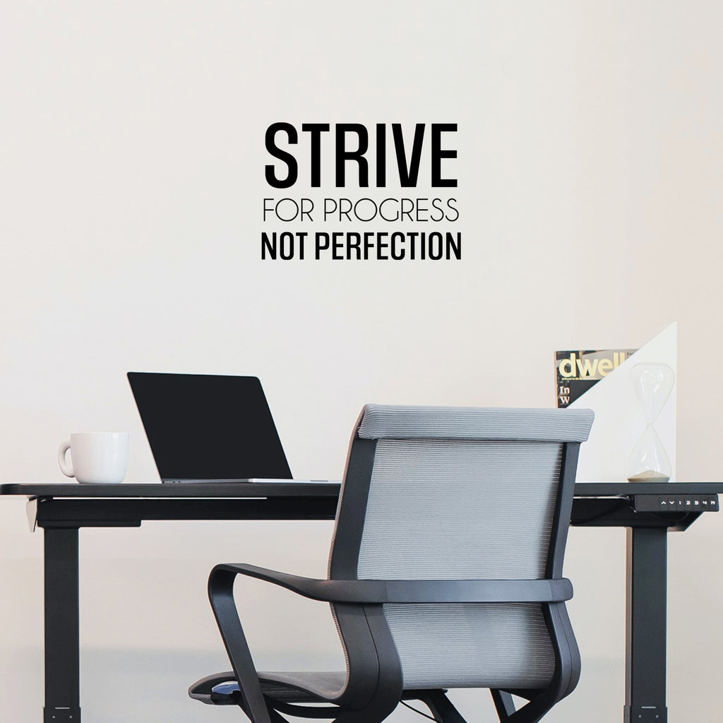 This awesome positive decal quote "Strive For Progress Not Perfection"; is the perfect touch for your home or office. Use it for your gym storefront; coffee shop or anywhere you want to bring some extra inspiring decoration. It's a vinyl sticker that is easy to put on any smooth and dry surface. Our modern designs don't just brighten up the room; but brighten up the day. Using top of the line vinyl across all of our production allows us to be the leaders in quality and design.