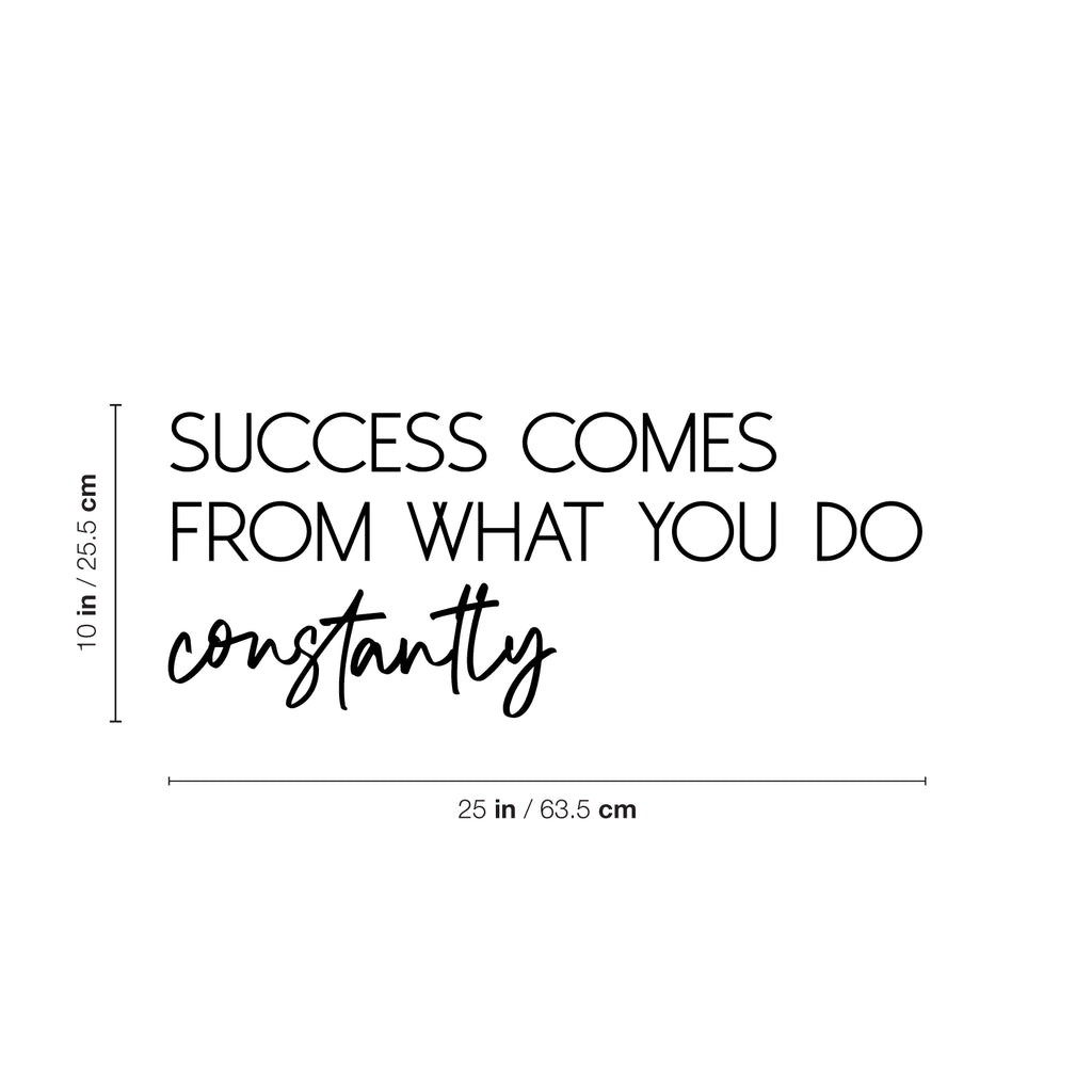 This awesome positive decal quote "Success Comes From What You Do Constantly"; is the perfect touch for your home. Use it for your office; fitness center; storefront or anywhere you want to bring some extra positive decoration. It's a vinyl sticker that is easy to put on any smooth and dry surface. Our modern designs don't just brighten up the room; but brighten up the day. Using top of the line vinyl across all of our production allows us to be the leaders in quality and design.