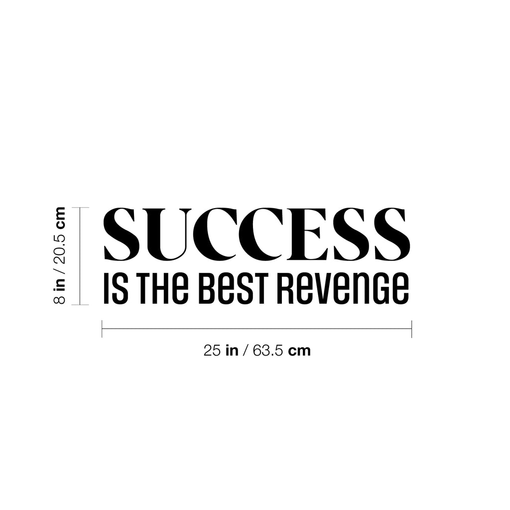 This awesome positive decal quote "Success Is The Best Revenge"; is the perfect touch for your fitness center or home. Use it for your wellness clinic; healthy center; storefront or anywhere you want to bring some extra positive decoration. It's a vinyl sticker that is easy to put on any smooth and dry surface. Our modern designs don't just brighten up the room; but brighten up the day. Using top of the line vinyl across all of our production allows us to be the leaders in quality and design.