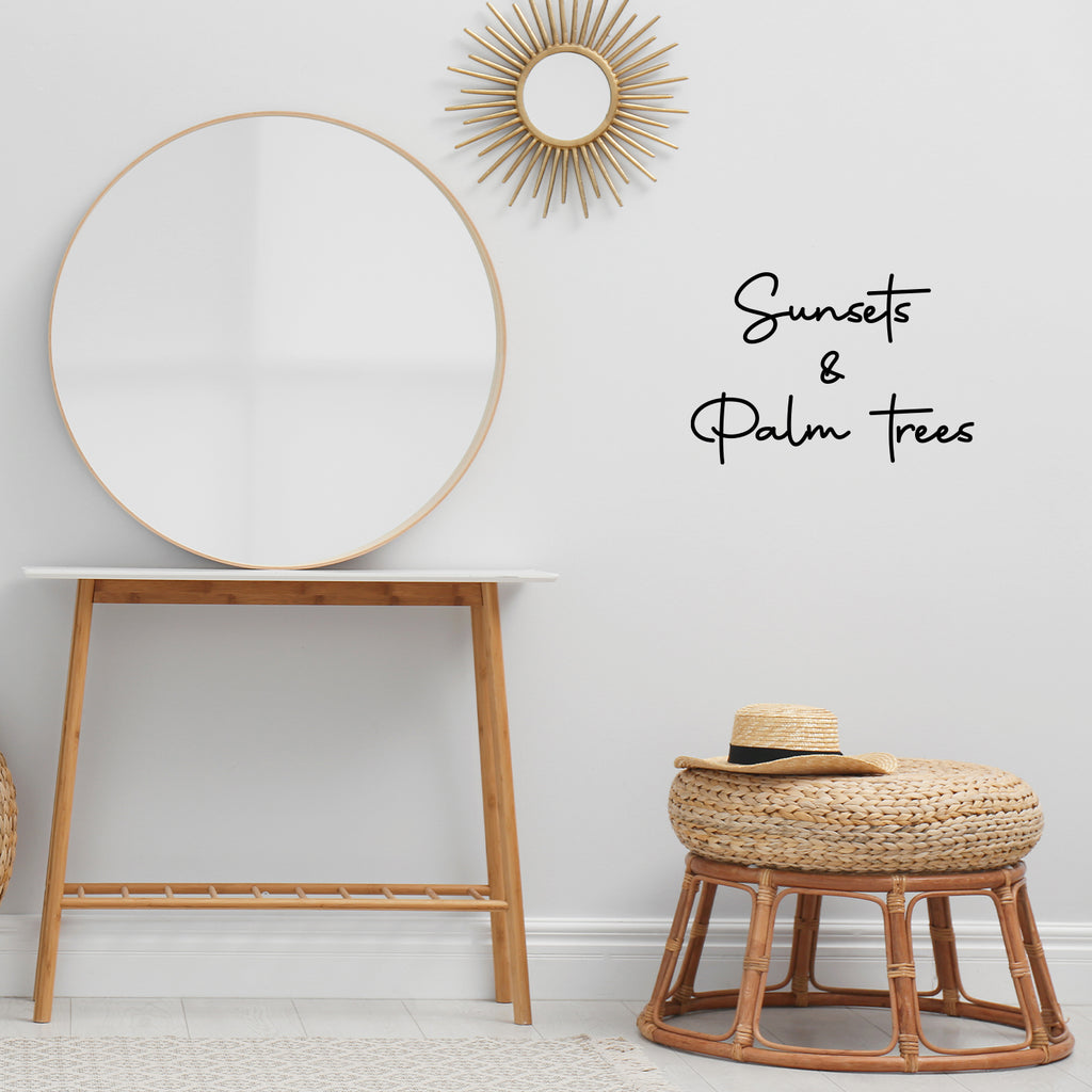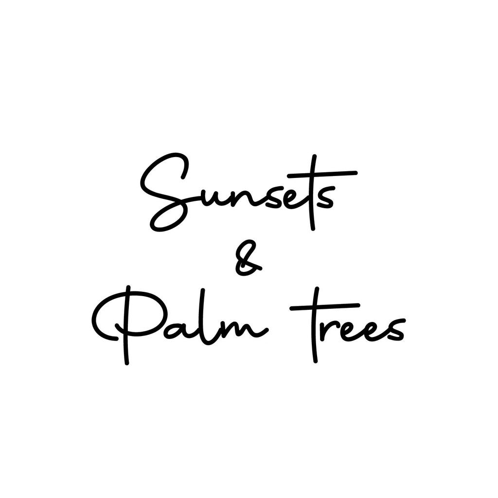 This awesome cute & optimistic decal quote "Sunsets And Palm Trees"; is the perfect touch for your home or gym. Use it for your kids room; playroom; office or anywhere you want to bring some positive decoration. It's a vinyl sticker that is easy to put on any smooth and dry surface. Our modern designs don't just brighten up the room; but brighten up the day. Using top of the line vinyl across all of our production allows us to be the leaders in quality and design.