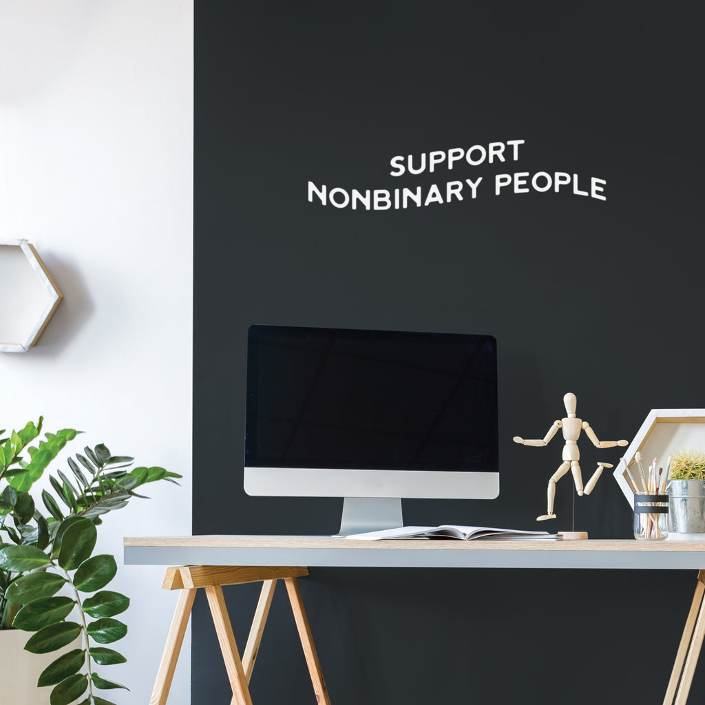 This awesome inspiring & positive decal quote "Support Nonbinary People"; is the perfect touch for your home or store. Use it for your office; business; storefront or anywhere you want to bring some extra positive decoration. It's a vinyl sticker that is easy to put on any smooth and dry surface. Our modern designs don't just brighten up the room; but brighten up the day. Using top of the line vinyl across all of our production allows us to be the leaders in quality and design.