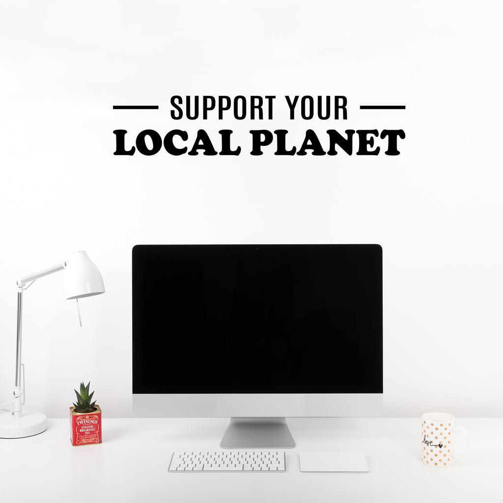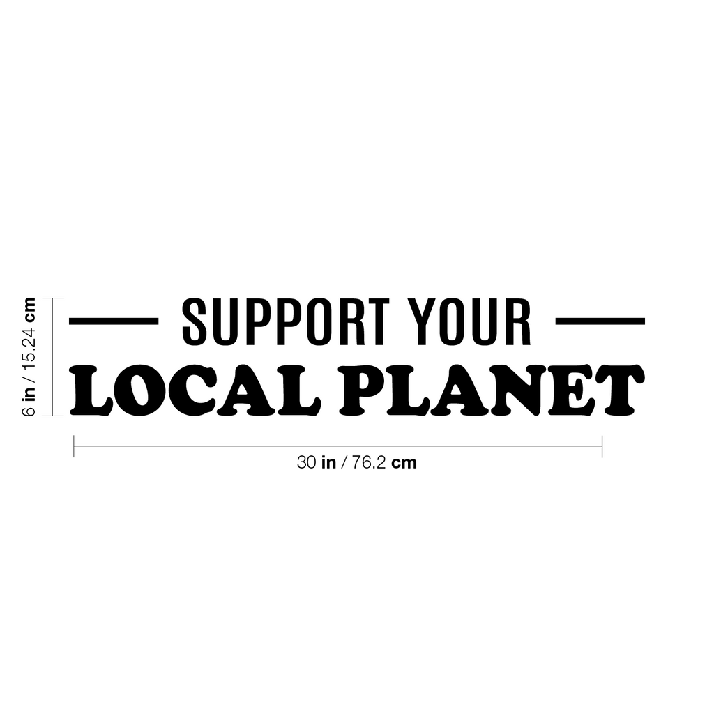 This awesome positive decal quote "Support Your Local Planet"; is the perfect touch for your home or school. Use it for your living room; playroom; kids room or anywhere you want to bring some extra decoration. It's a vinyl sticker that is easy to put on any smooth and dry surface. Our modern designs don't just brighten up the room; but brighten up the day. Using top of the line vinyl across all of our production allows us to be the leaders in quality and design.